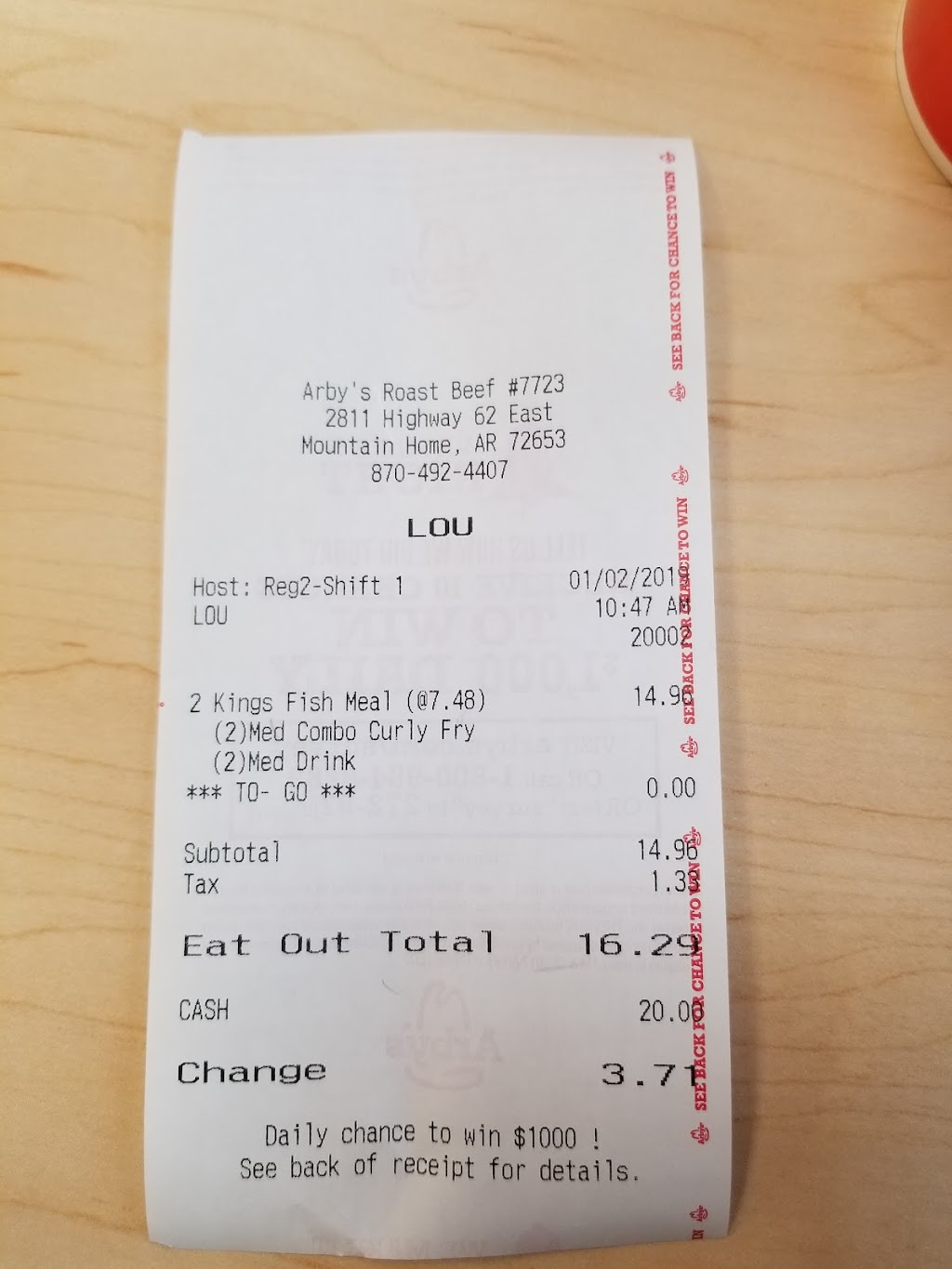 Young lady at counter was so warm and welcoming. Felt like I was being treated like family. She recommended the brisket sandwich which was amazing. Wish Arby's would build a restaurant in Cherokee Village.