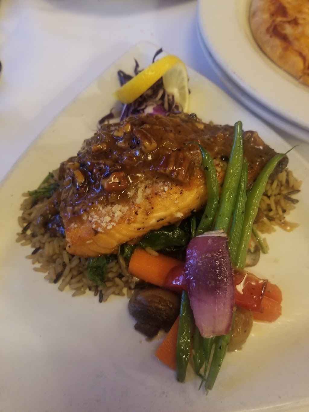 The best food ever! We had trout almandine and prime rib excellent. The environment was very nice also. Couple glasses of wine topped it all off.