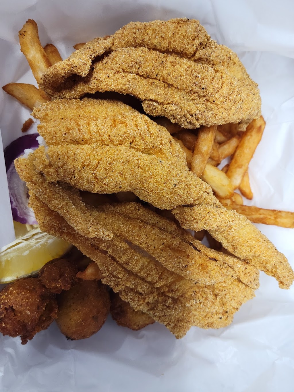 Service good. Wife ordered chicken fried chicken she said it was good. I had chicken fried steak which was readymade frozen and I would say was edible but not good. Noticed awards best hamburger and catfish will try one of those next time.