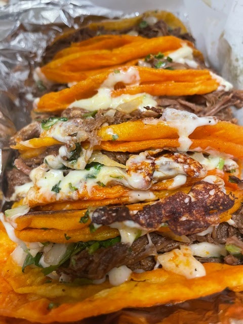 Wow, really really good brisket tacos- add chorizo!!!!!! You won’t regret it! And get the broth too, it truly ties the tacos together. Also, there’s a fun little market behind the food truck with some neat treasures. Looking for dried hibiscus by the bag, check the market out. It’s worth a peek while you wait for your food. Also, hibiscus water is soooo good at this place too.