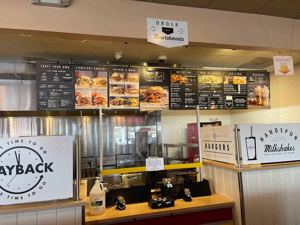 Online order is available, so you can skip the line. Restrooms are located in the gas station adjacent to Wayback burger.
