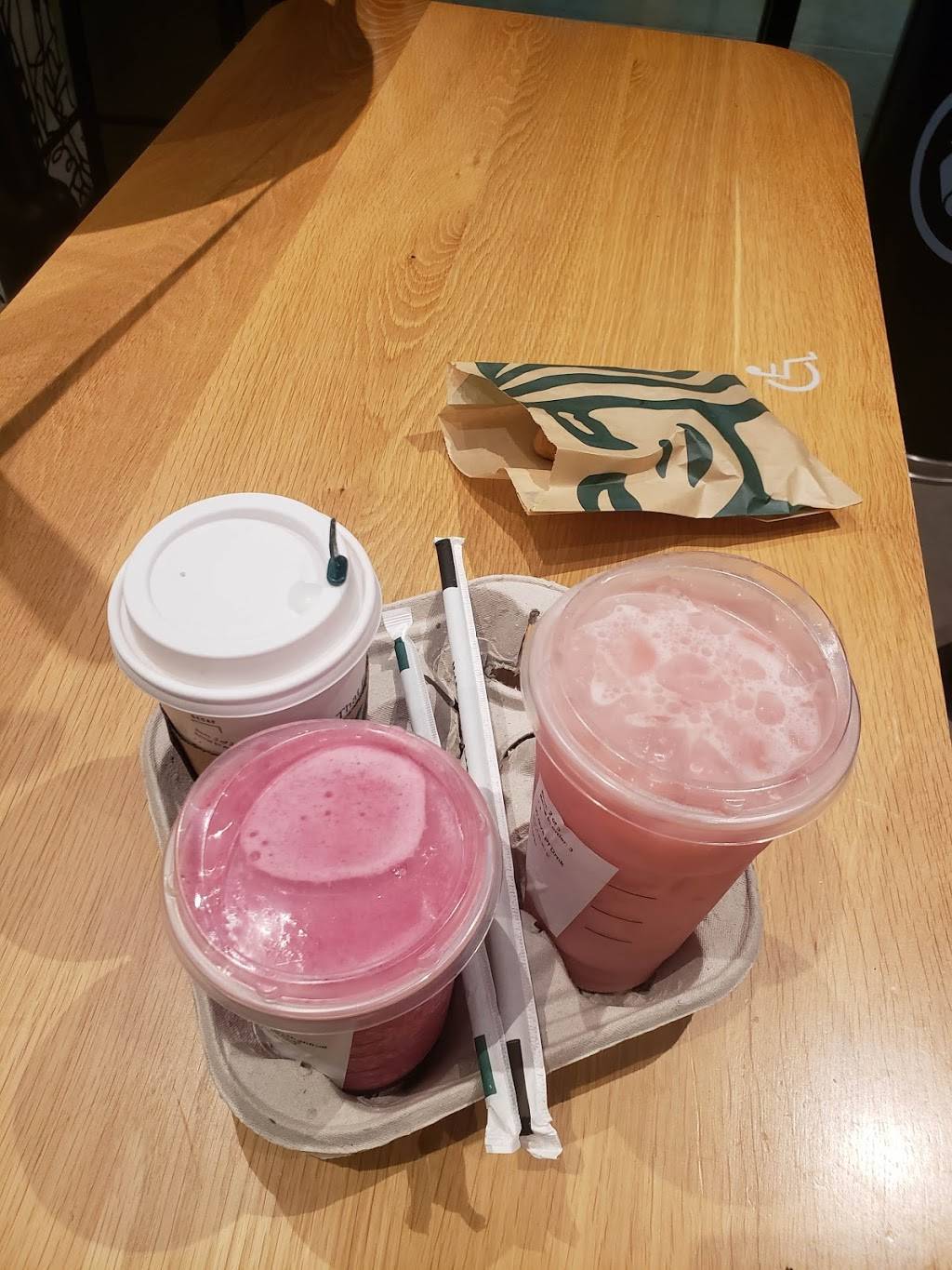 Good drinks which is what you expect from Starbucks. The employees work so super hard around 2-3pm because there's always a ton of customers about that time of day but I know that so, I'm patient and I eventually get my order, so I'm happy.