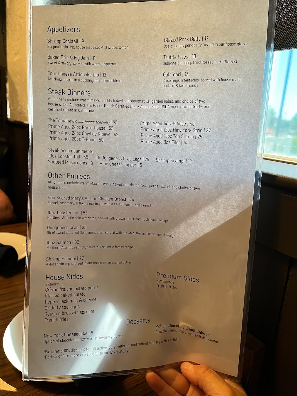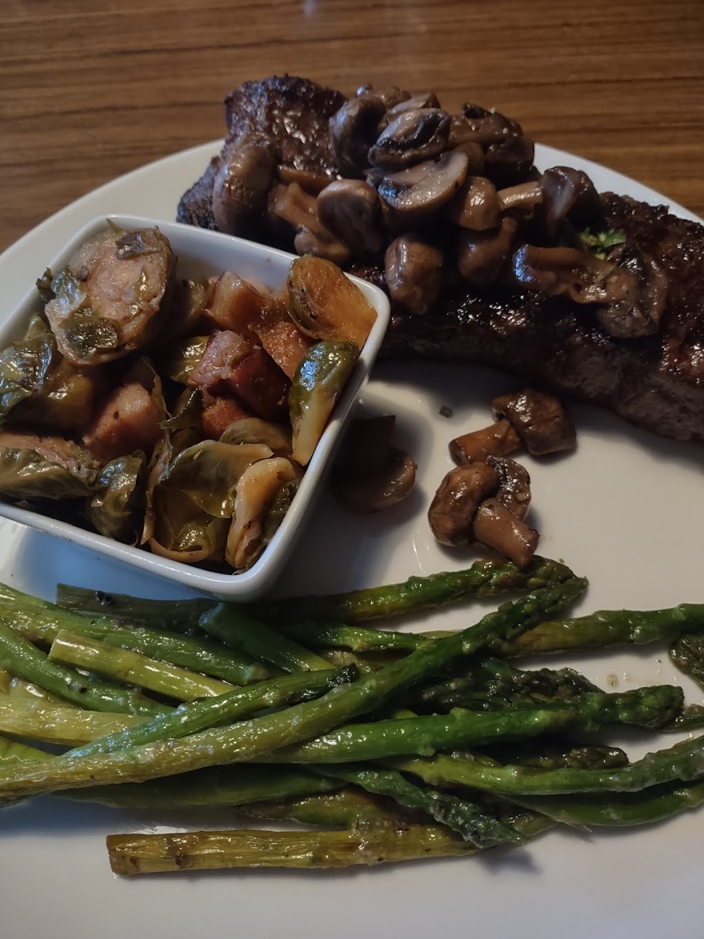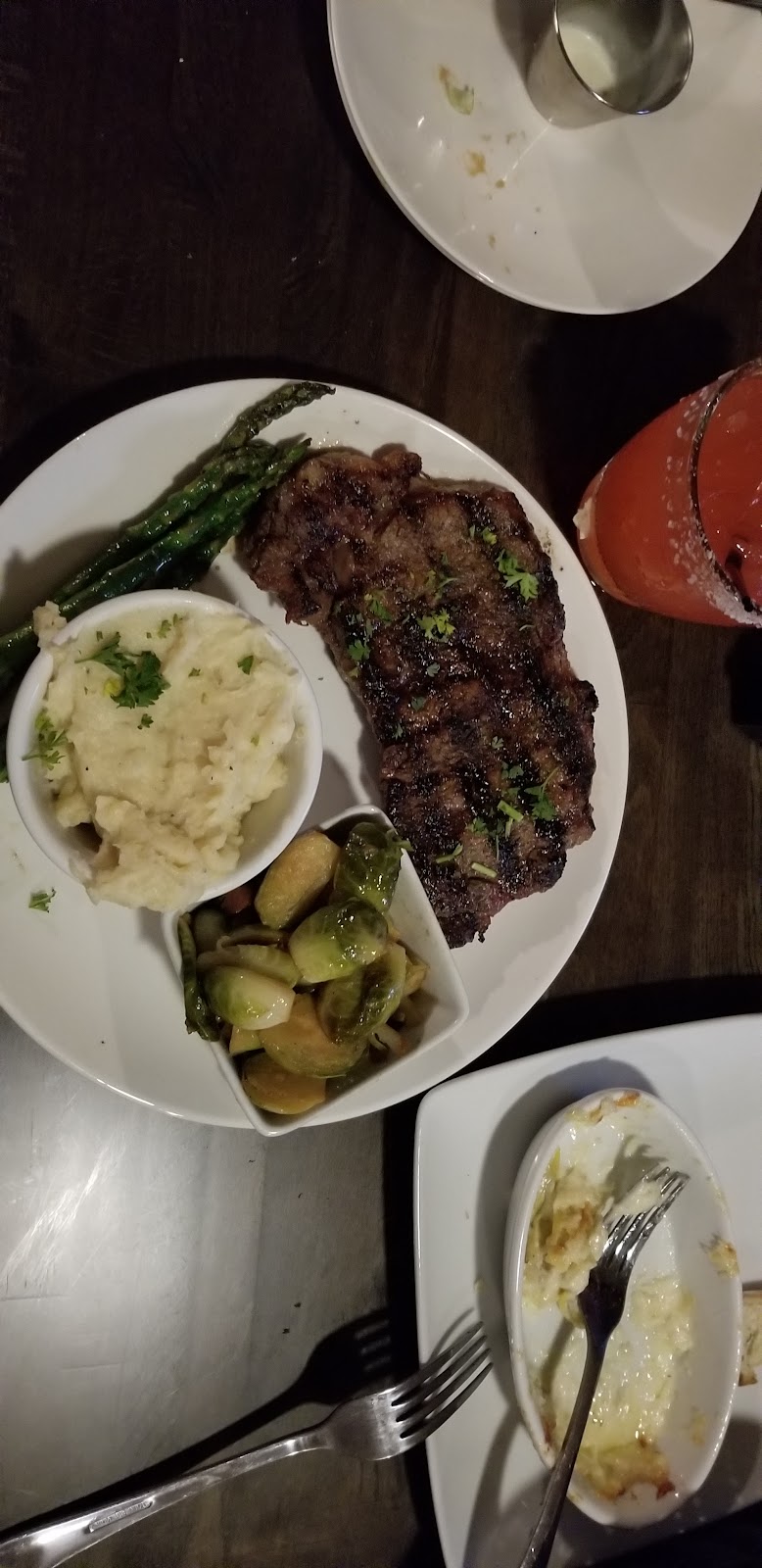Sirloin was so delicious! Potato Puree & Asparagus were so good!! Need a few more menu selections. Brie with Fig jam was surprisingly good! Ribeye Baked Potato & Mac-n-Cheese was good! We will be returning 😋