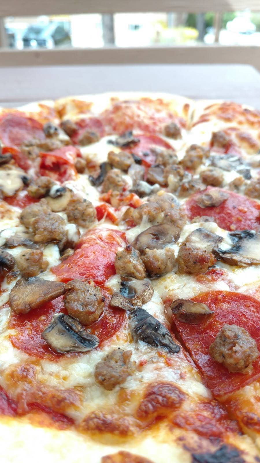 Delicious pizza and friendly staff. Nice choice of beers on tap including Lengthwise Zeus imperial IPA. If you eat on the patio you might have to share with the meat bees.