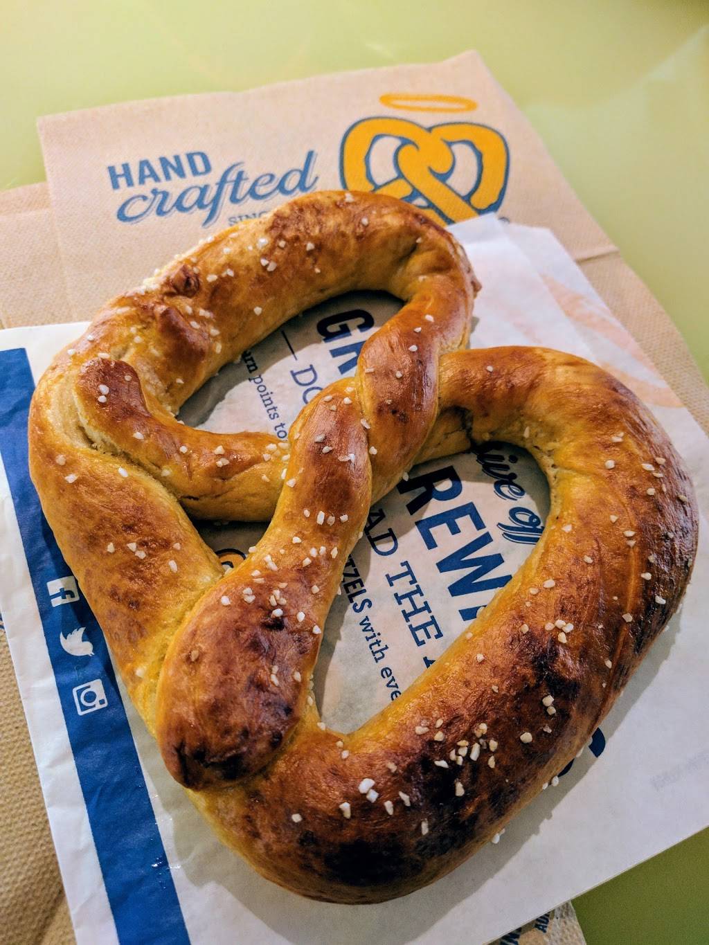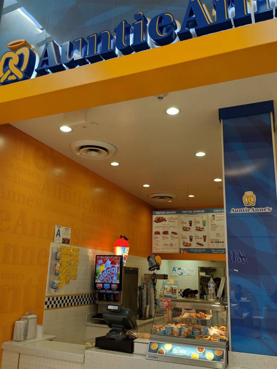 Not sure why rating for this location is low but I love Auntie Anne’s even more than that Wetzels nonsense. This one is great. Conveniently located right next to Target they are always fresh warm and stocked. I always use my pretzel perks!