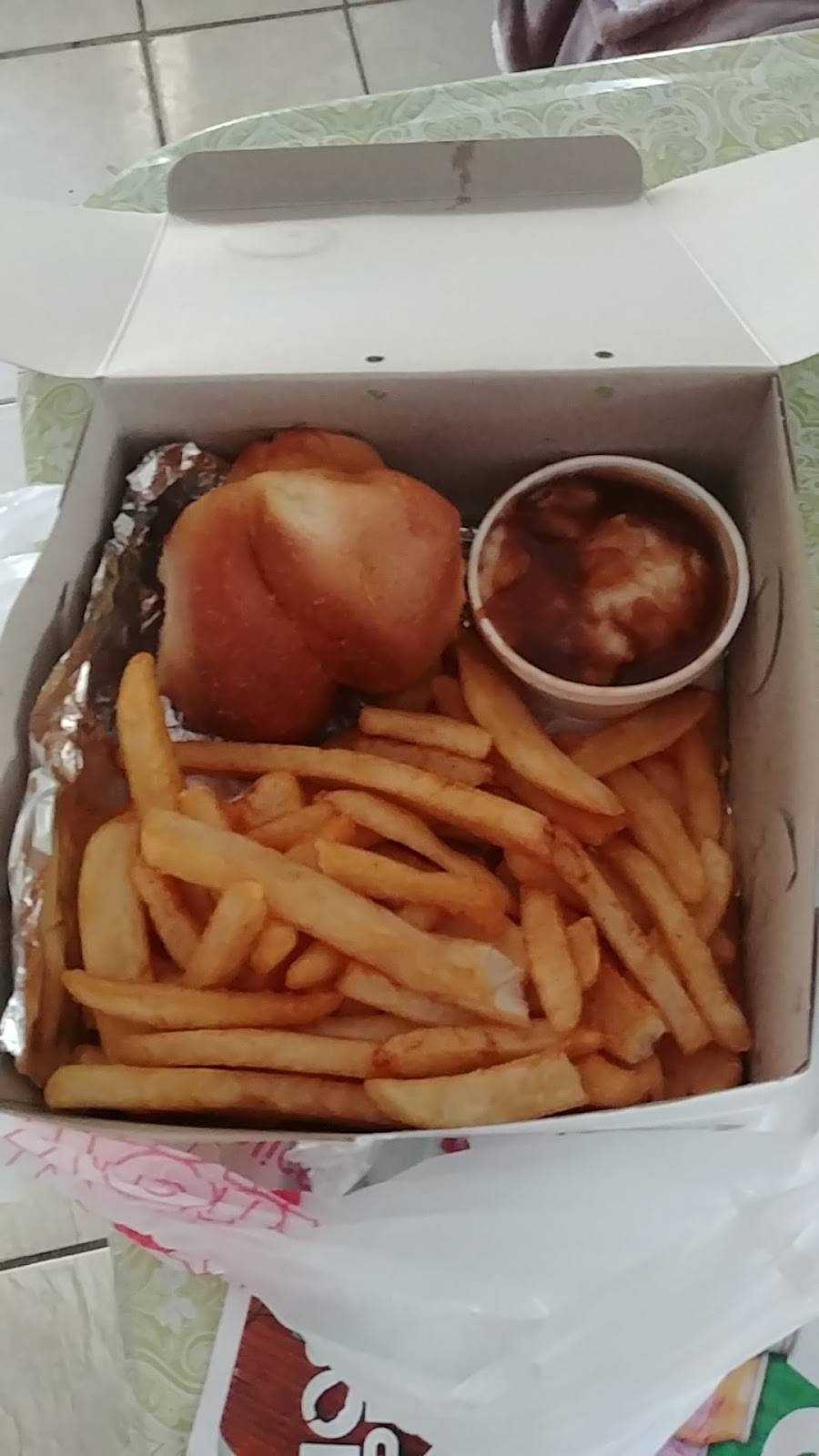 Bomb fried chicken great muffin bread and it's cheap