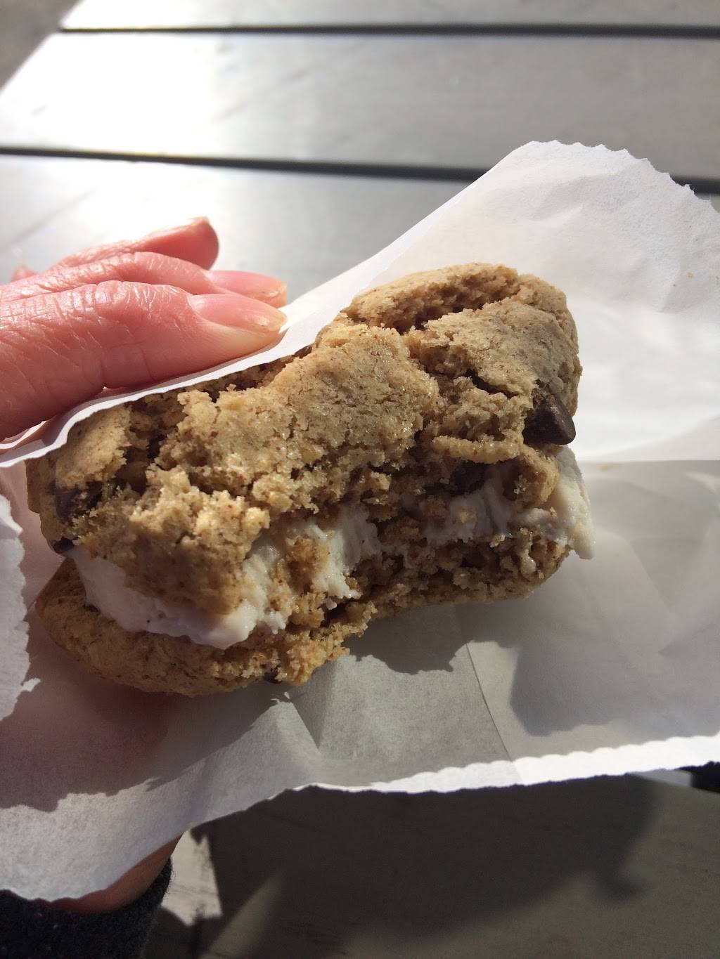 Now that's a super good vegan on the healthier side cookie. Yum. Now the packaging needs help. I sat there in Vromans book store battling to open the cookie on the stealth. I was super hungrey and sure enough a clerk sawme wreasling with the wrapper. But darn, that's a tasty cookie.