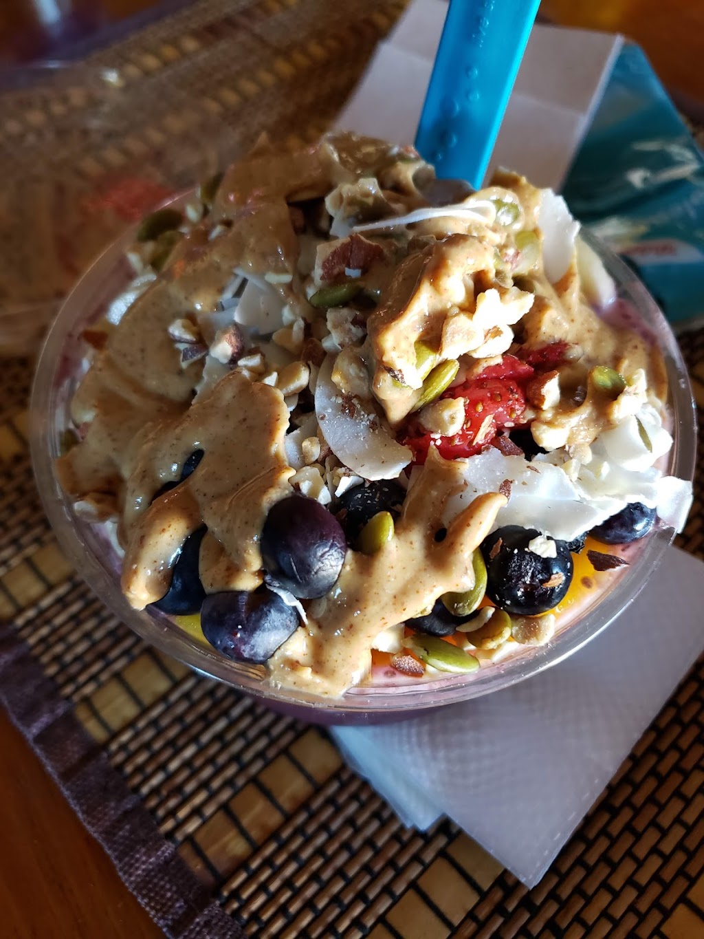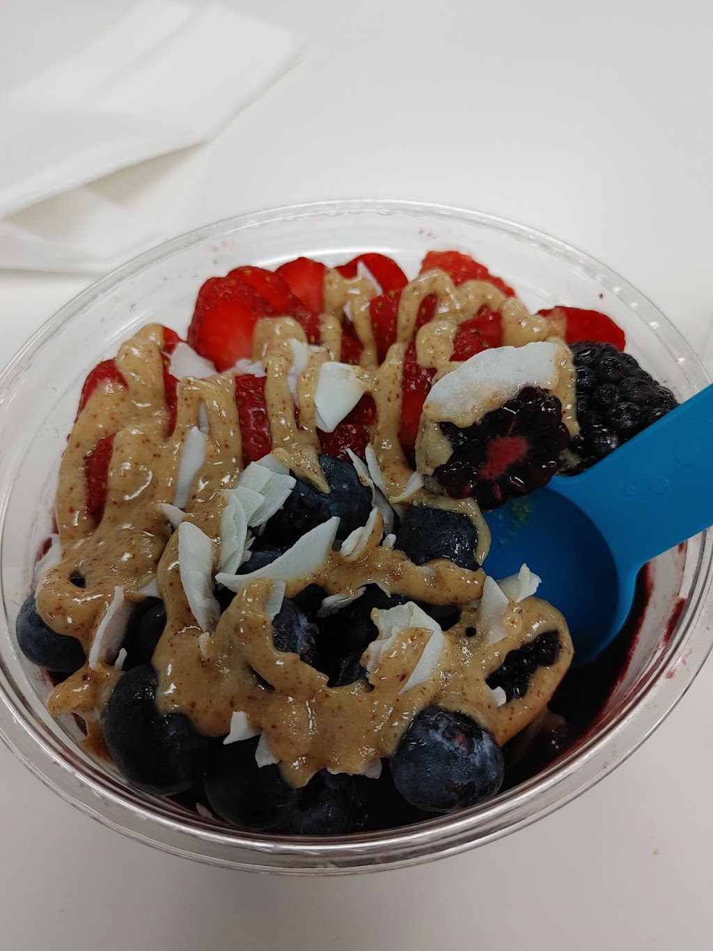 I ordered peanut butter sauce to be drizzled on top, expecting to really enjoy it, but I don't know what I was thinking. It was pretty gross. Fortunately, the staff was very understanding, and quickly remade my order with no fuss. (edit: I just didn't like peanut butter with fruit, that was my mistake, there was nothing inherently wrong with the peanut butter sauce)