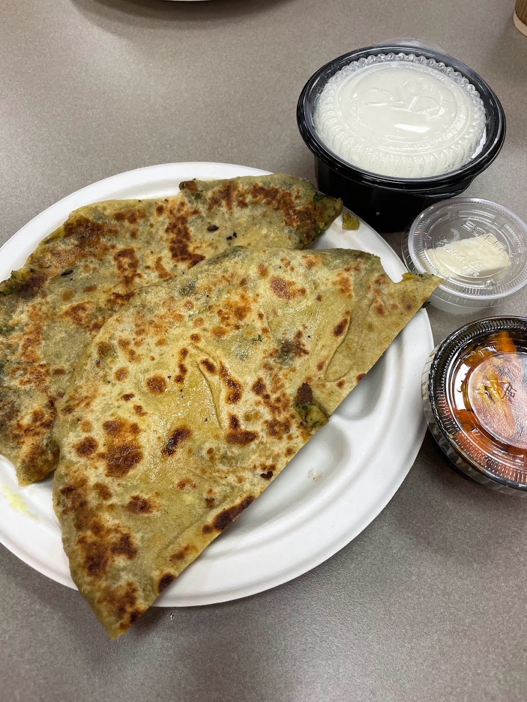 Excellent Indian food inside Travel Plaza Food court , very clean place , stopped by on a friend’s suggestion and enjoyed every bite of my food , samosas , saag paneer , garlic naan , aloo parantha , paneer tikka everything was so flavorful and delicious…. Had to get much more packed ,to go …. Chef and Manager Mr Kamaljeet Singh is very friendly .Not to miss their complimentary masala chai and fresh carrots , garlic , gobhi pickle …. Sooo yummy 😋😋will come back soon.