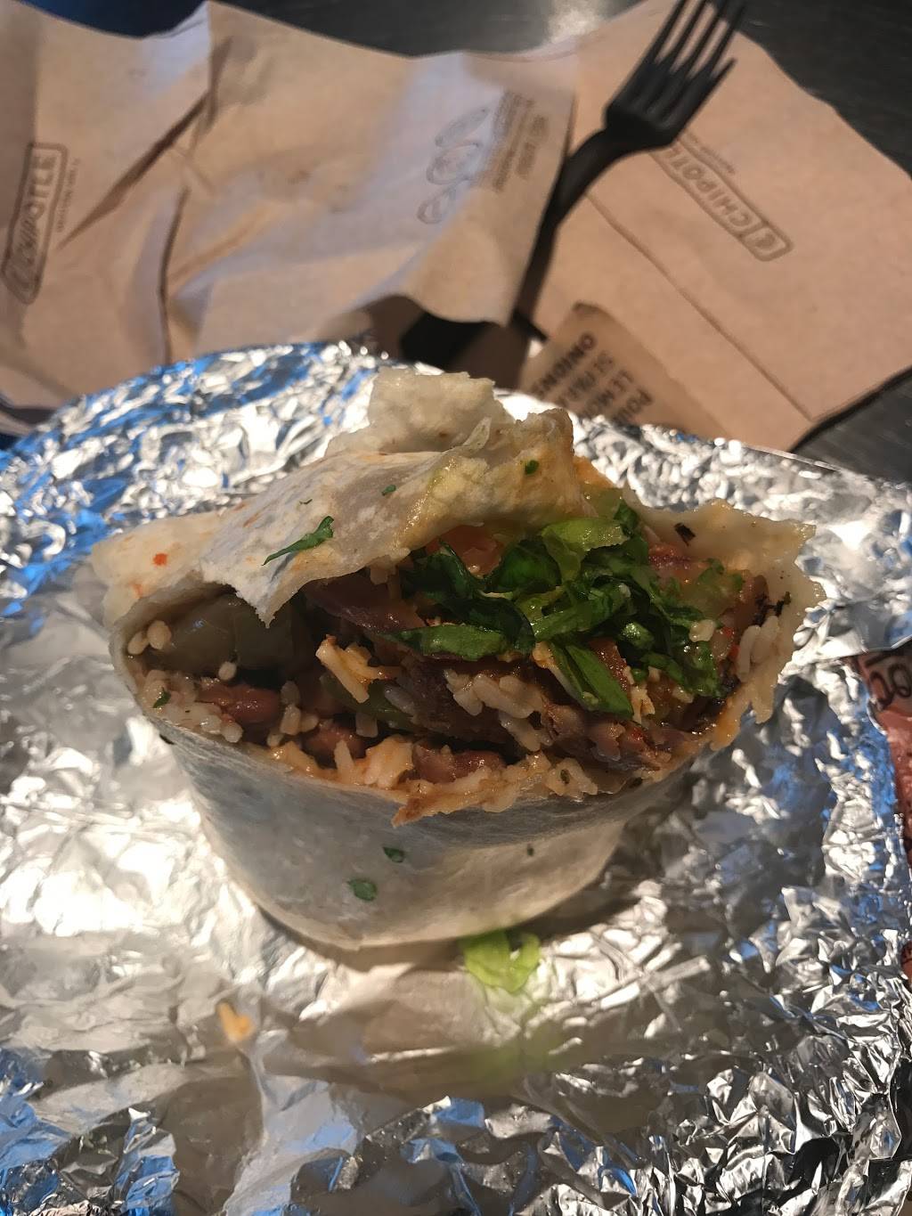 Easily accessible from 101. And ample parking in the mall this Chipotle located.