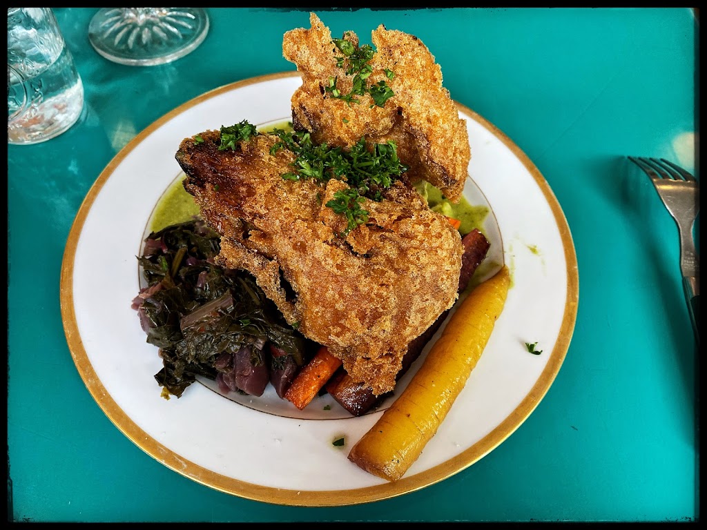 We loved the meal here, had the garlic soup, fried oyster mushroom, pot pie, and banana pineapple cake. Everything we had was delicious, the service was great, and atmosphere was extremely pleasant with bright colours and modern French cafe music. Not sure why people complain about portions being small, must be true ‘Muricans used to the large XL portion sizes. We found the portion sizing to be perfect. It was one of the biggest personal pot pies I had ever had. As far as vegetarian places go, it was very gratifying.
