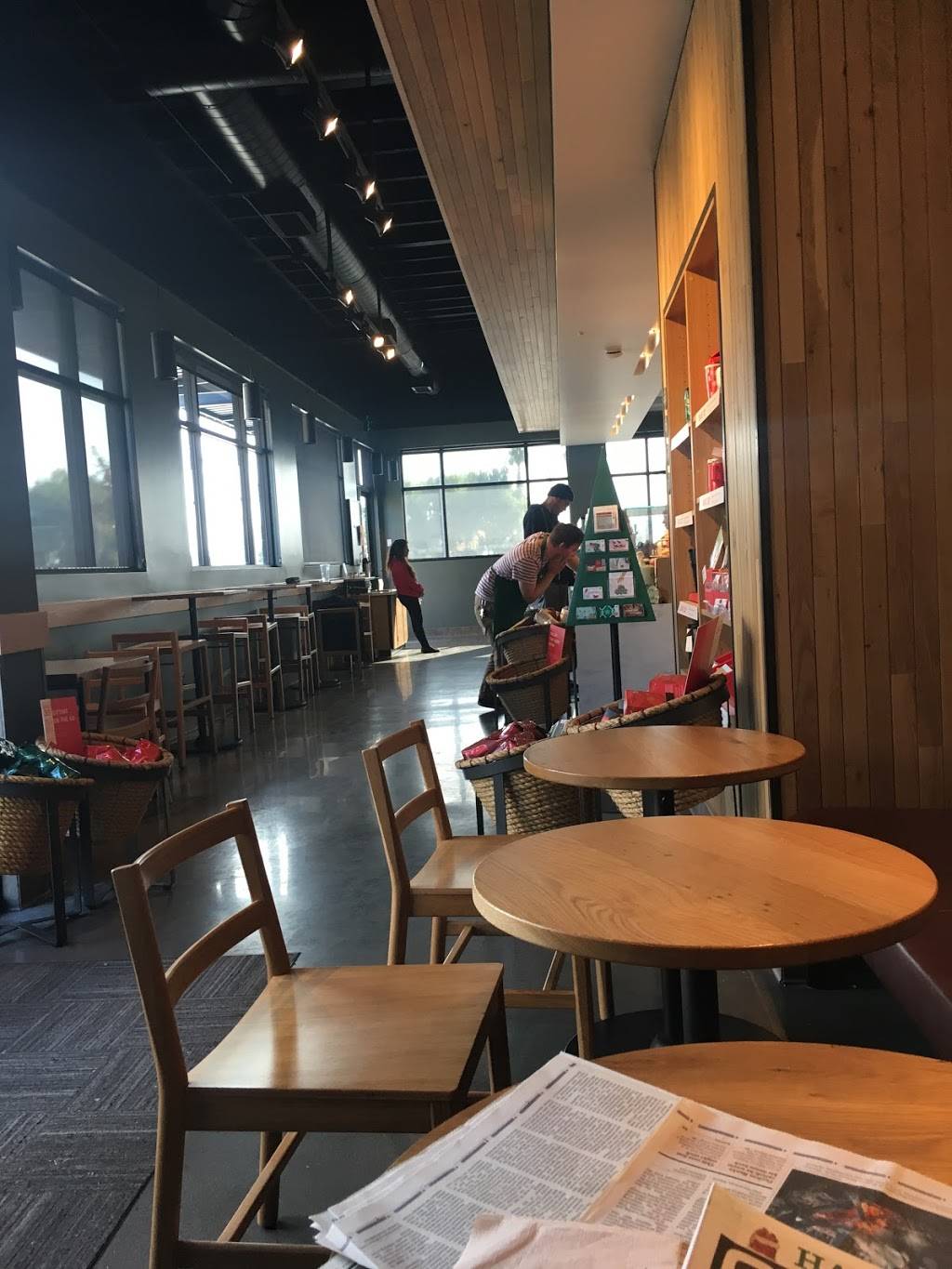 Actually really nice new cafe. I got a cu p of Peach Tea, and the staffers were kindly enough. Found parking in the very back. Lots of parking! Out doors is sweet place to relax-ish. My current bucks is under construction this is a great alternative. Music plays inside. It’s a high school spot during lunch, just saying.
