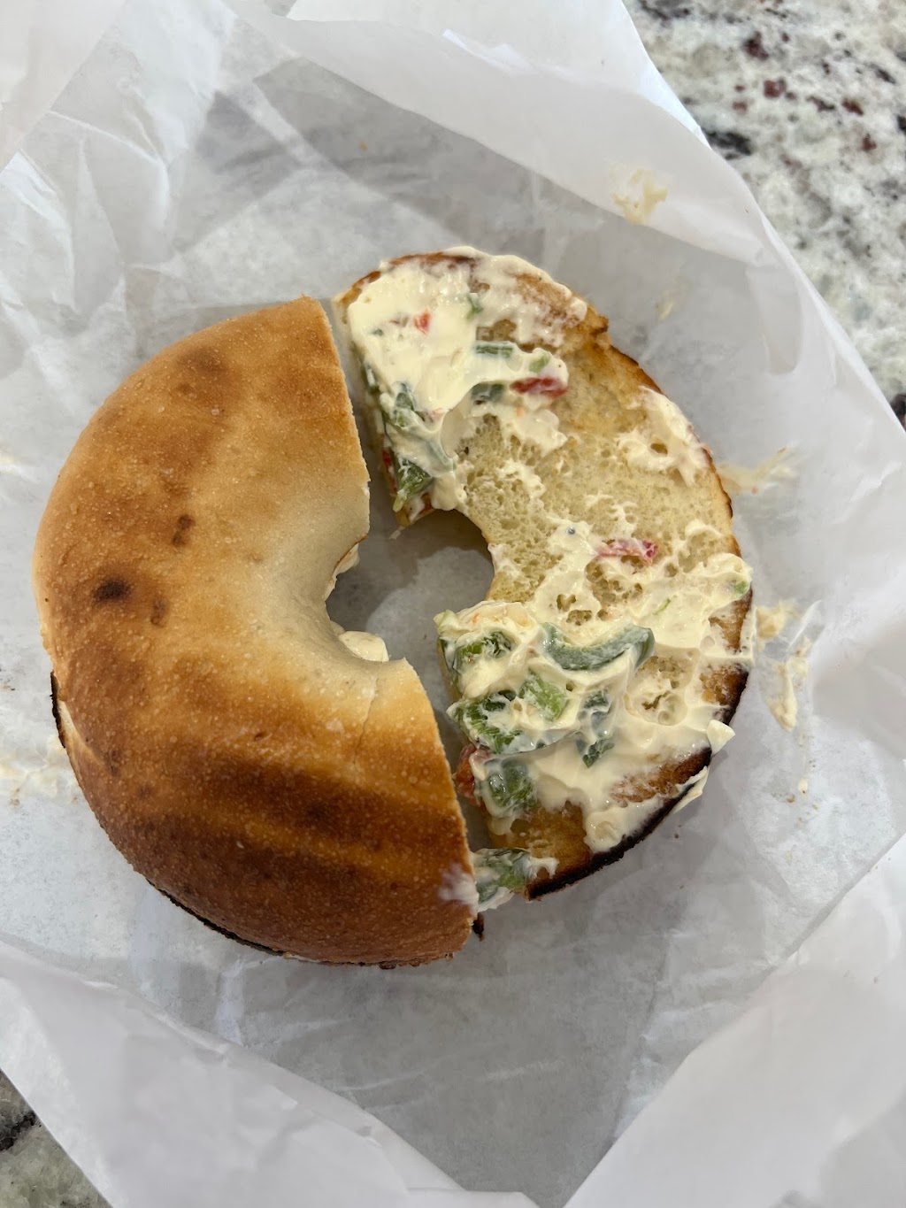 I got a sourdough bagel with jalapeno spread and it was even better than Posh Bagel! They put bits of jalapeños within the spread which gave it a spicy but not overpowering taste.
