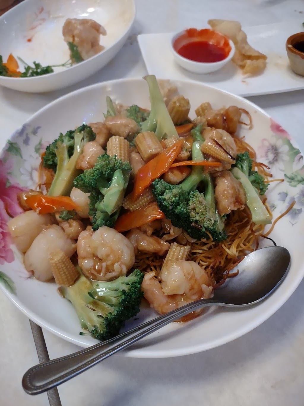 Very good & real Chinese food! Candied Pecans, large prawns & bites of apple, my entree was great! Also, enjoyed the garlic cucumber appetizer/salad. So refreshing. We will be back 😋
