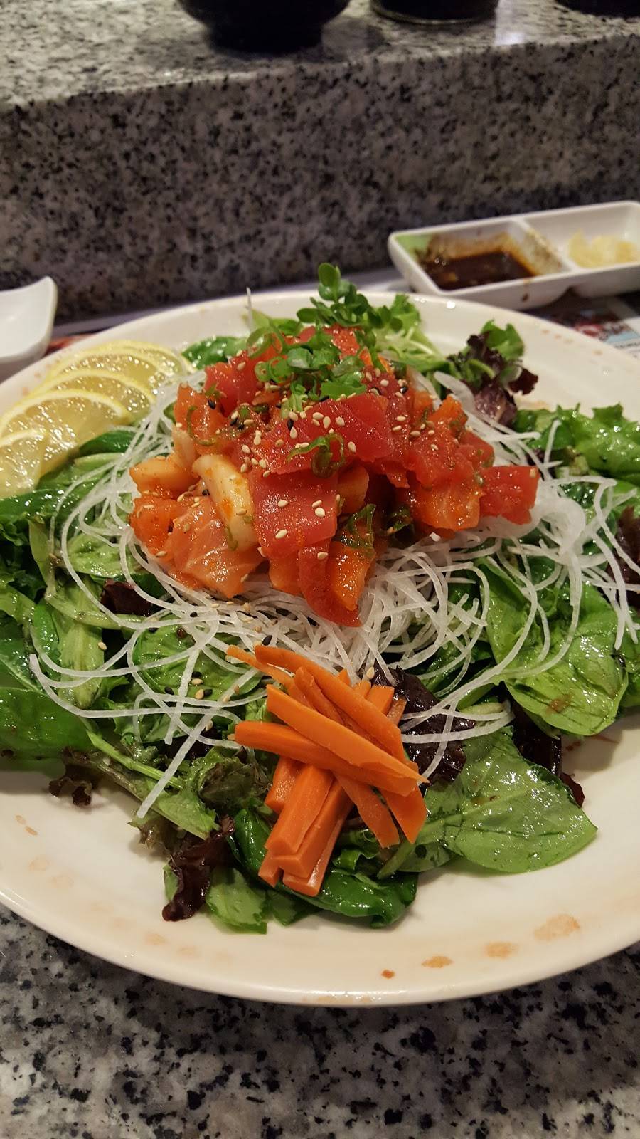 Japanese food and the atmosphere here is very good. I wanted to post a food pic but it looked so good I couldn't stop. Prices that won't shock you. Not close to my job, I wish it was.