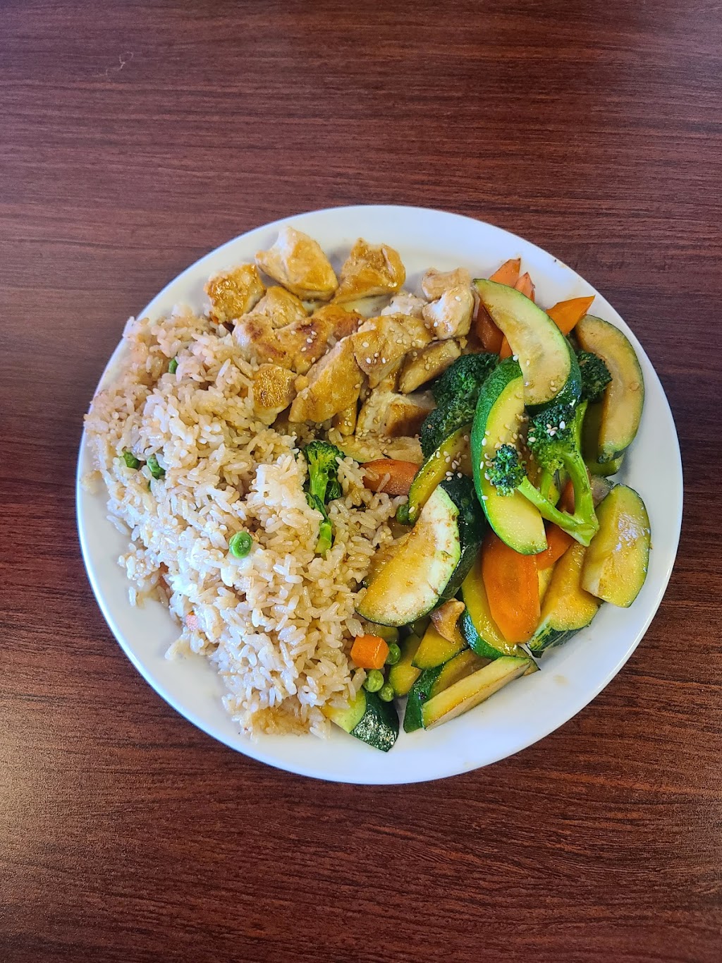 The chicken hibachi was fantastic, lots of fresh veggies, loads of tender chicken AND fried rice with miso soup. Great proportions.