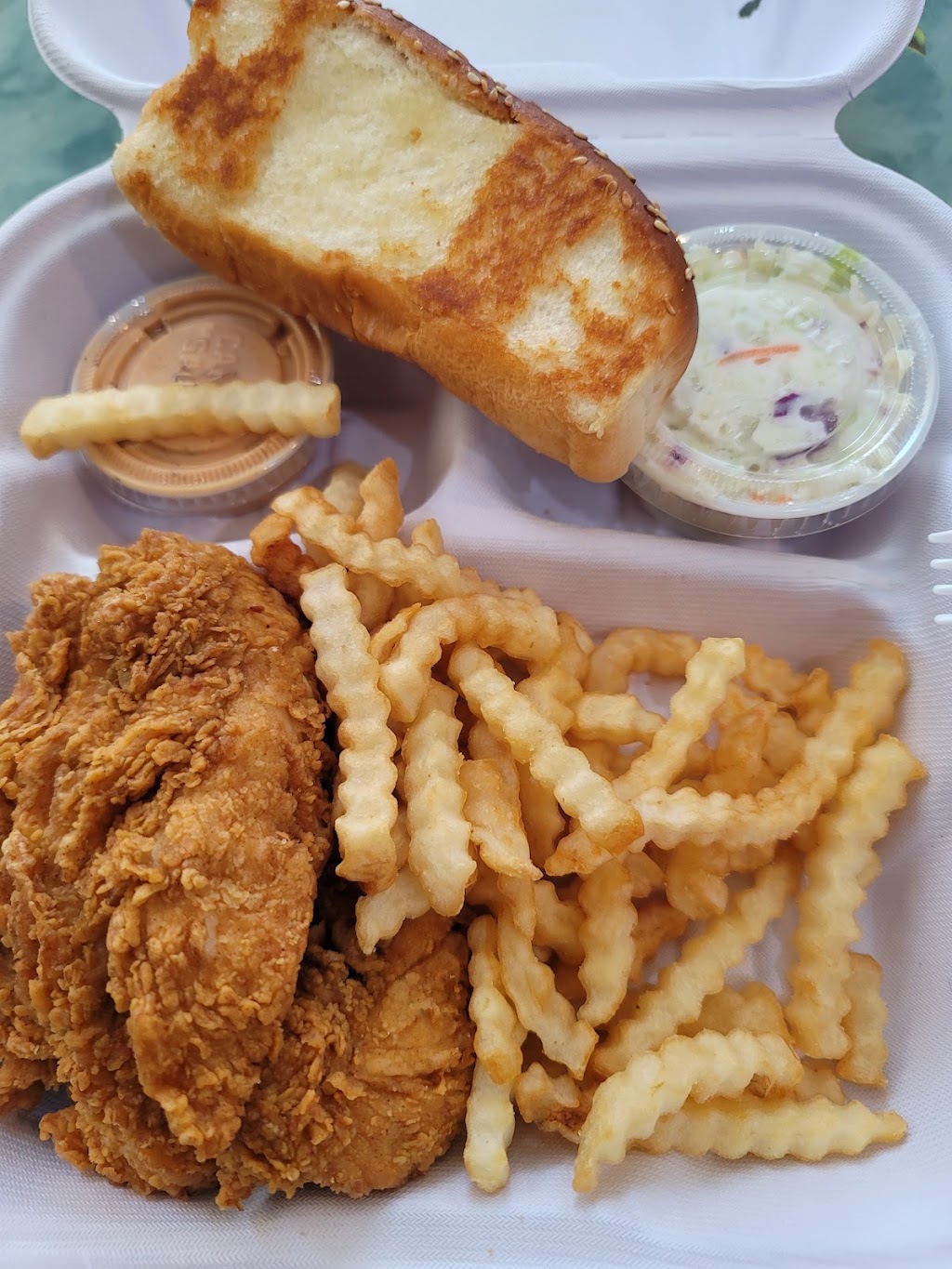 If they had BBQ sauce I would give them 5 stars. Chicken is excellent. You get a feast for $9.99 and it comes with a drink! Great deal. I just took it home and ate it with ranch and BBQ sauce. It was delicious!