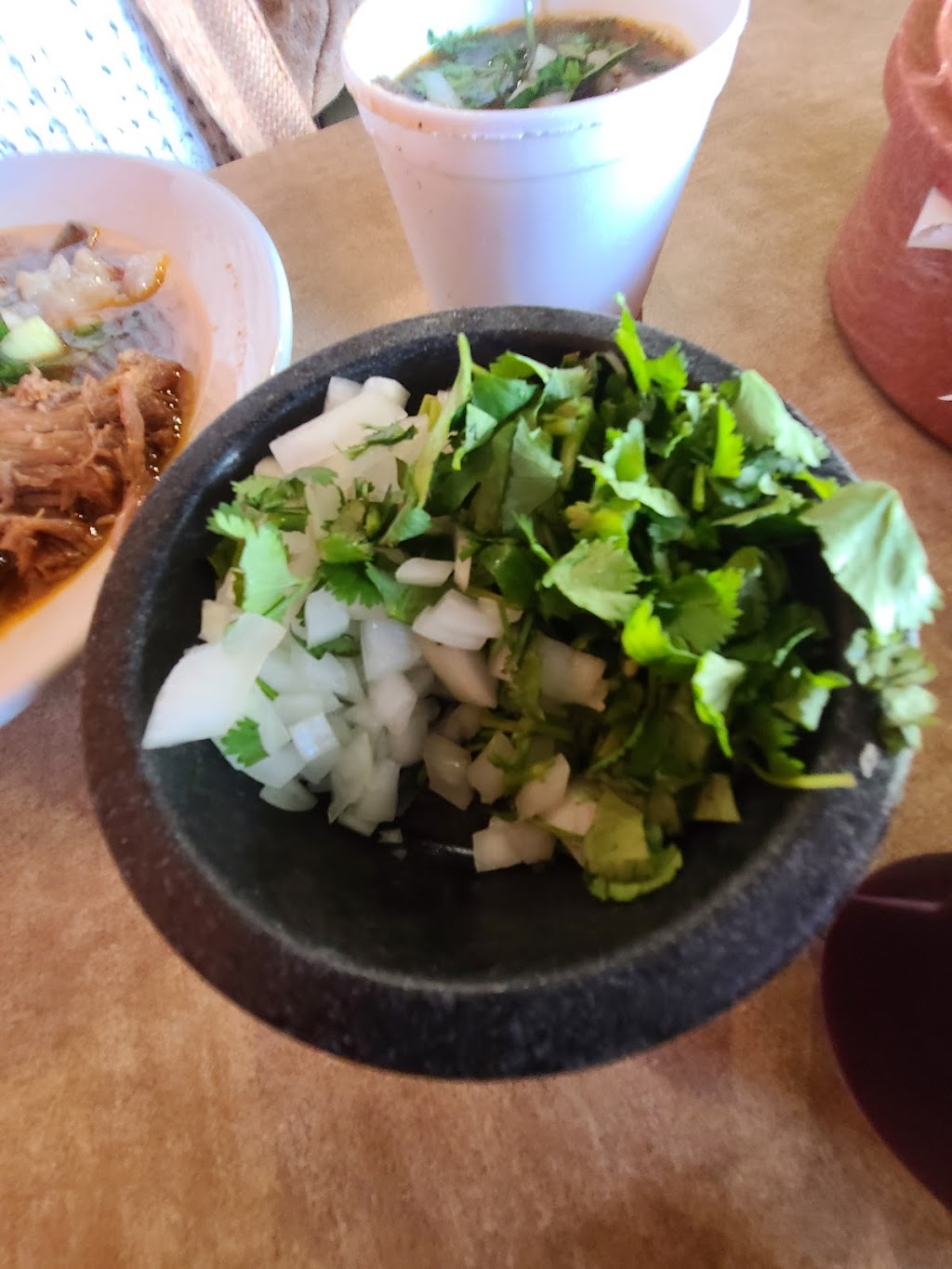 My wife and I waited approximately 25-30 minutes to be sat down. It was worth the wait. My wife had the 1/2 order of birria de res (beef birria/stew) and I had quesatacos de birria de res with handmade tortillas. Keep in mind if you want hand made tortillas they charge $1 extra. With the half order of birria the hand made tortillas come included. I really reccomend it. We will be back soon .