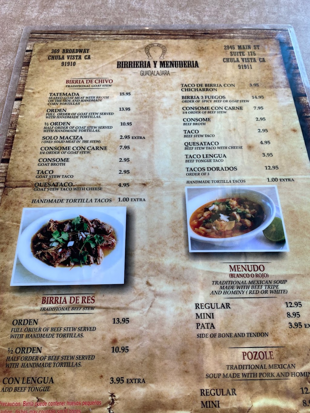 Tatemada Goat Birria is our favorite. Service is fast! It is worth it to pay a dolar extra for handmade tortilla per taco! The menudo is perfect, if you don’t feel like doing it yourself. They have Beef Birria Taco with Chicharrón and it is delicious. Oh! If you are a fan of tripa this is the place!