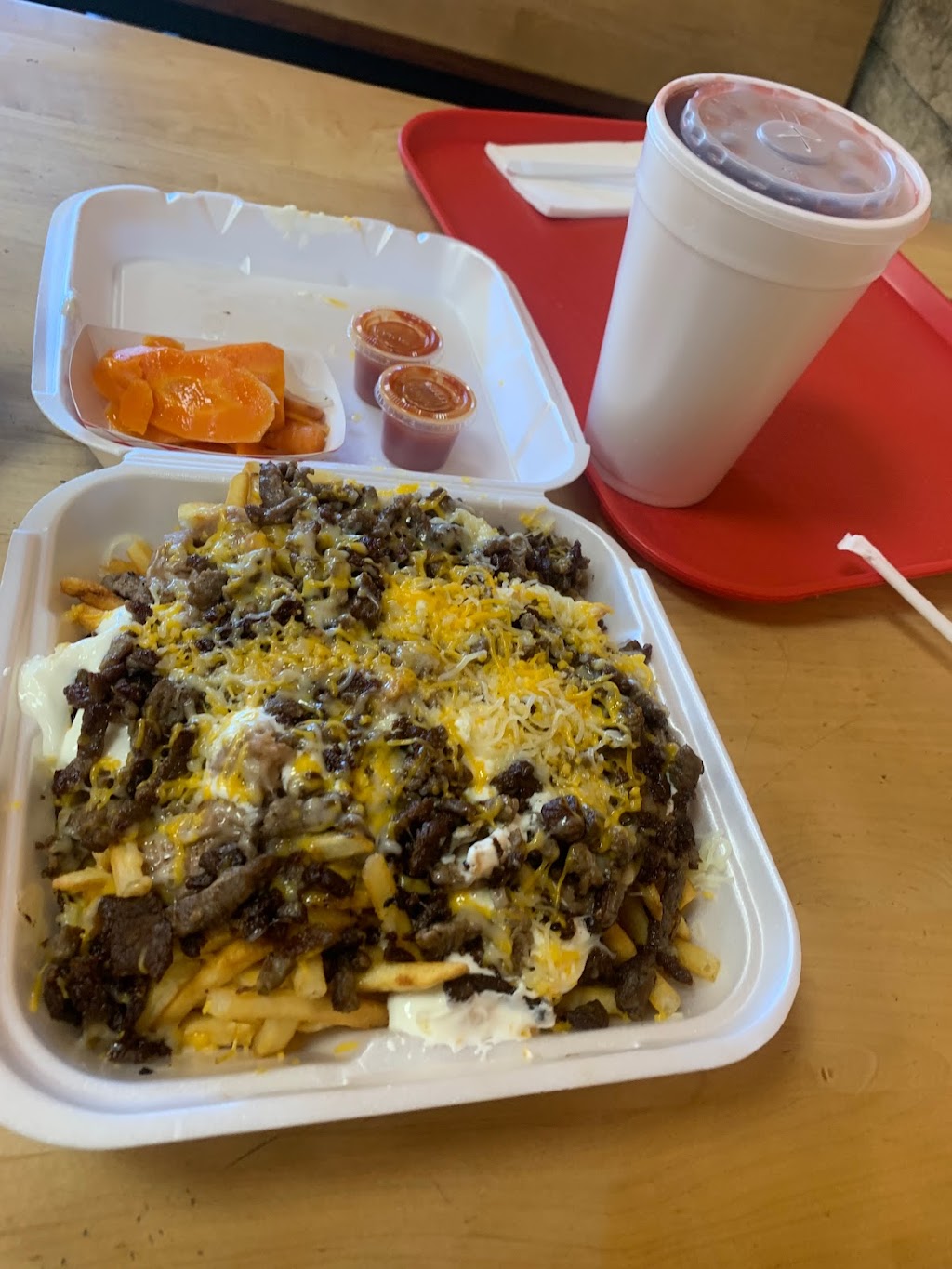 This taco shop has an amazing owner, who cares about his customers and his food. The Carne Asada fries were delicious and a great size for the price. I look forward to trying the California burrito next! Good food and good service! The Carne Asada fries came with sour cream, guacamole(I like it on the side), beans, and cheese! Huge portion and worth the money!