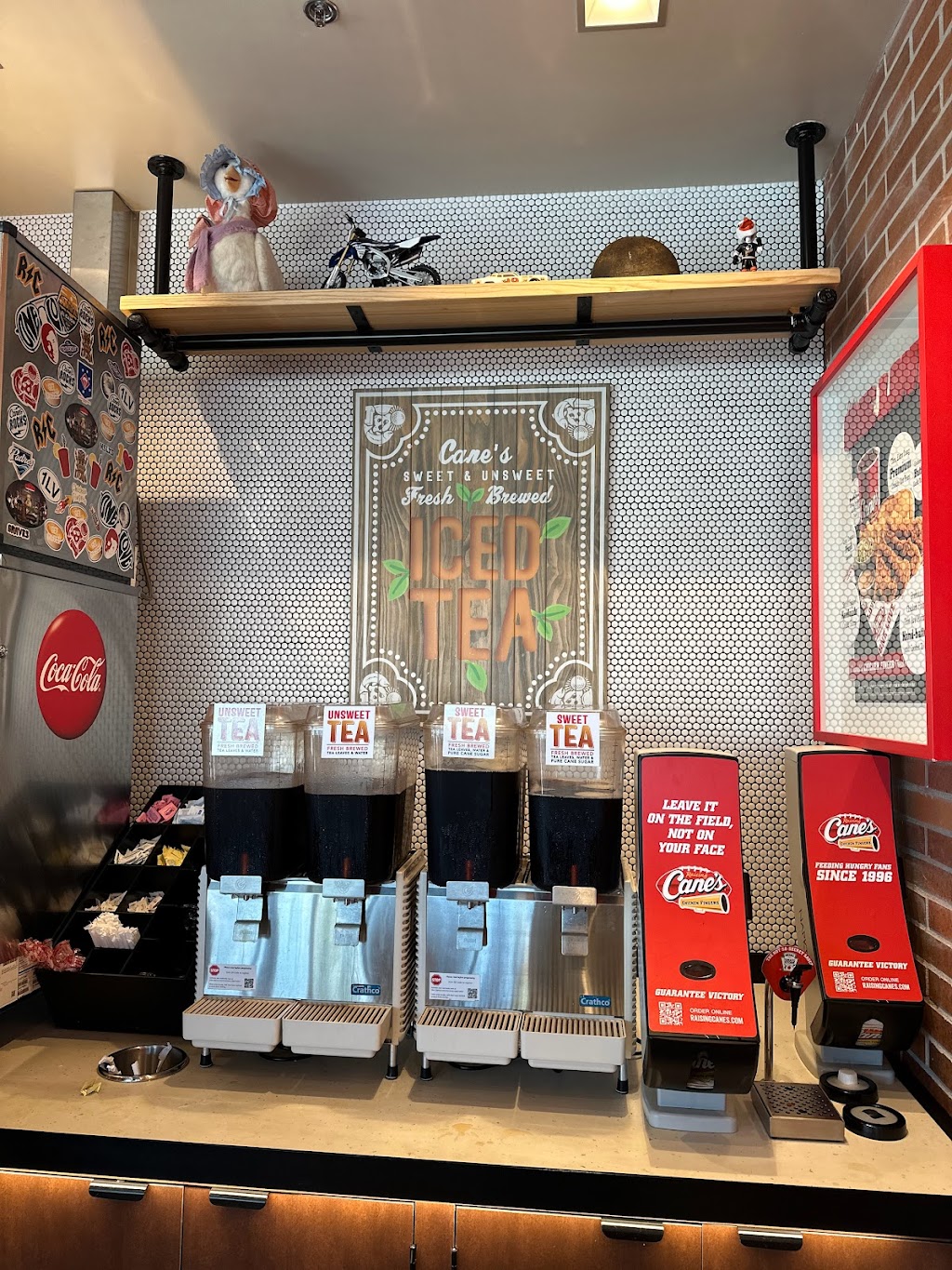 ONE LOVE. I absolutely love the food here, the canes sauce is what really completes the meal. The chicken fingers at canes are always so buttery and juicy, always served just right. Personally I’m just not a fan of coleslaw in general, so I always replace it with more fries or an extra toast. I really like that they serve toast with their meals, it’s different from other places and it’s great with the sauce too. The place looks so cool, you walk in and immediately notice the 3 disco balls and the atmosphere is very welcoming. I’m thankful that this location finally opened up, no more driving all the way to Santee 🙏