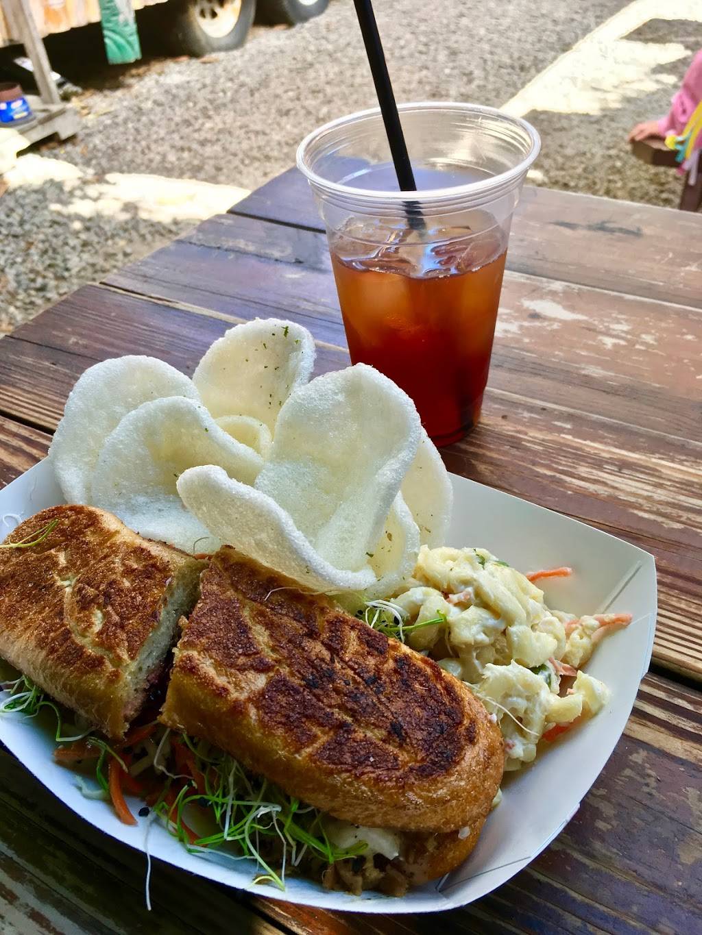 A rock solid choice for lunch! My wife and I visited for a quick bite and went with the puppy which are more than welcome. With an all outdoor seating that offers nice shade, the spots is great for any weather. I went with the pulled pork sandwich and my wife the poke ????. We will definitely be stopping back for more!