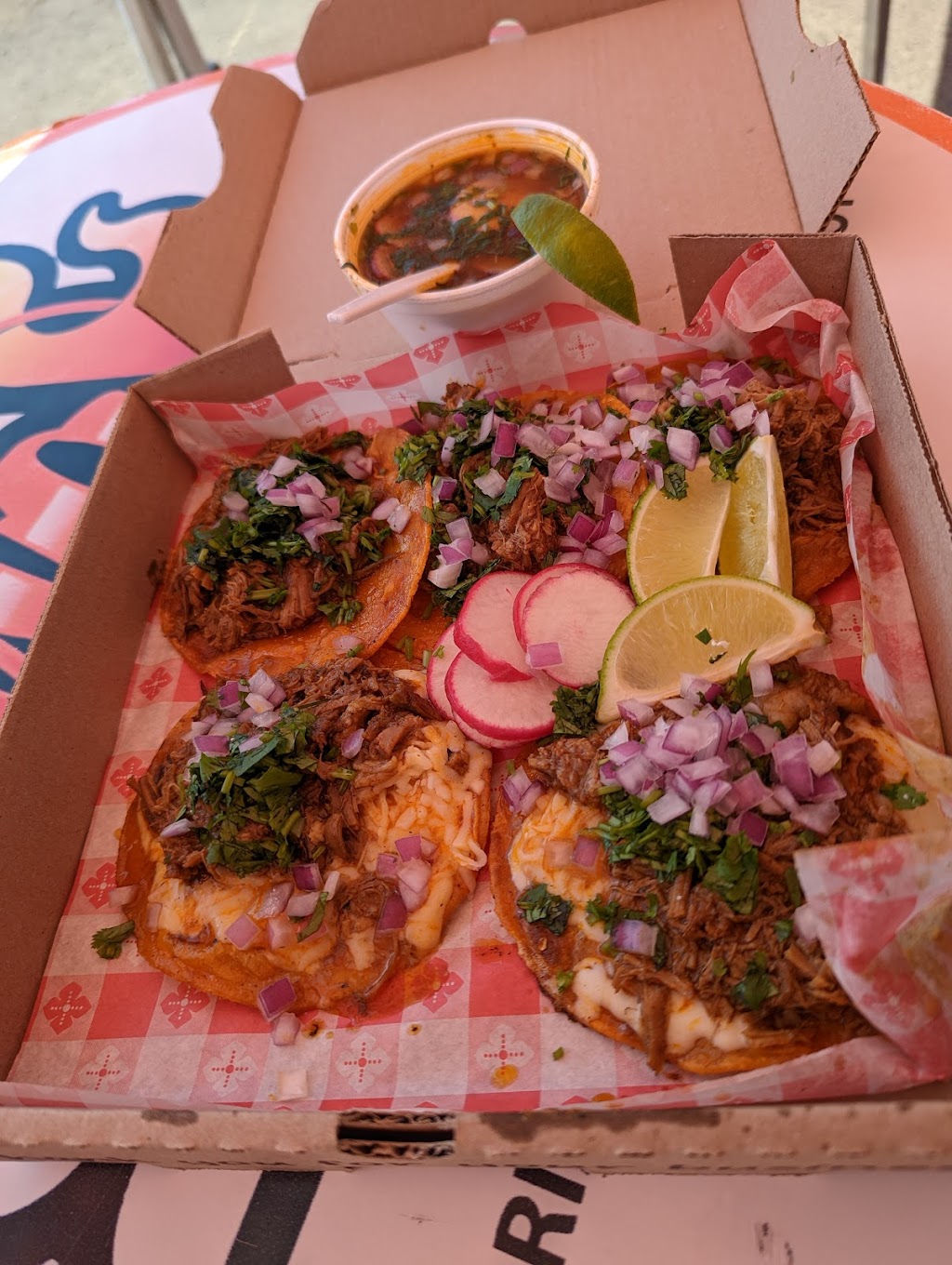 Will be back again with more friends and family. This place is amazing. Authentic Mexican birria beef with thier own extra hints of flavor. The birriafries with the crema and quesofresco added on top of the mouth watering beef birria on top of the perfect crisp fries deffenitly used all 10,000 of my tastebuds!!!! This is must have on anyone's to do before I die list!!