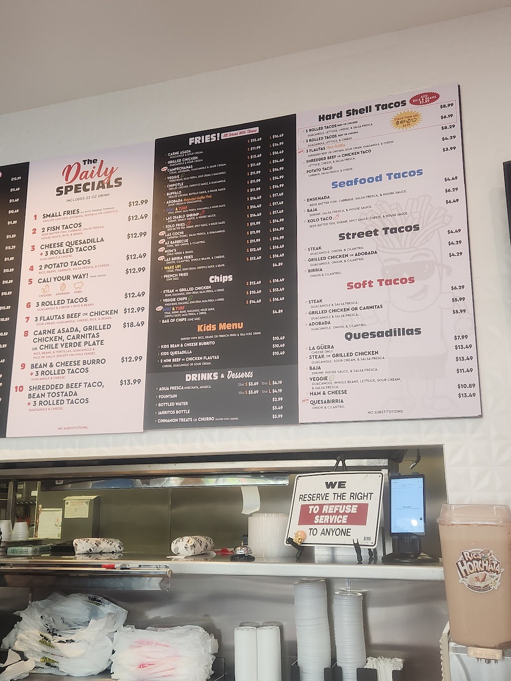 You can never go wrong with Burros and Fries. I always order the Surf and Turf burrito. But I've had their rolled tacos and tacos which are equally delicious. A bit pricier but worth it to me. This location the staff was great, the place was clean, and you can dine in if you wish.