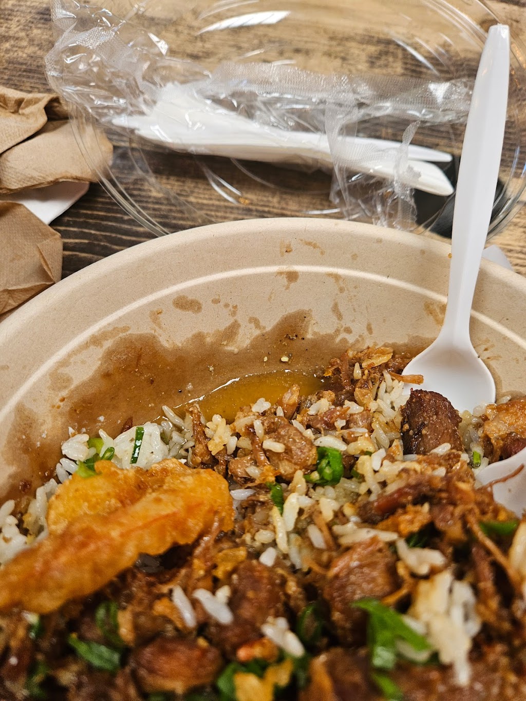 Ordered the pork adobo. Took about 10 mins to come out. It tasted good, however, It was super oily and leaking through the cardboard container they use. Lost my appetite eventually.
