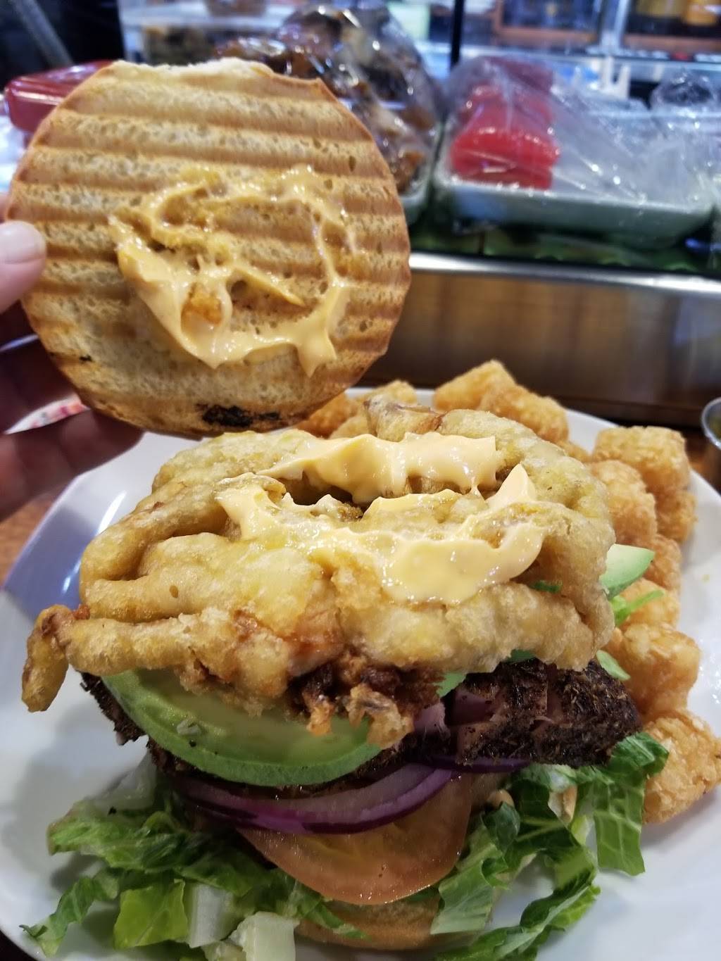 This is the best food joint in Ramona!! Hands down some of the best food. they cover every need, from deli sandwiches and burgers for a quick lunch bite, to all things sushi. And Mr. Tuna(Ken)cuts sushi like no other! His dishes look like what you see on a TV show! Sam my waiter was amazing! My drinks never hit the bottom! Everyone here is just cool. Even the cook Hoss has a bomb burger on the menu. They make the vibe here perfect! This pick is the "big O fish" sandwich! Ahi tuna with soft shell crab! It is a must try! From bomb beer selections to sake and wine. What are you waiting for? Go!!!