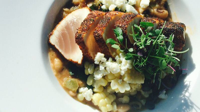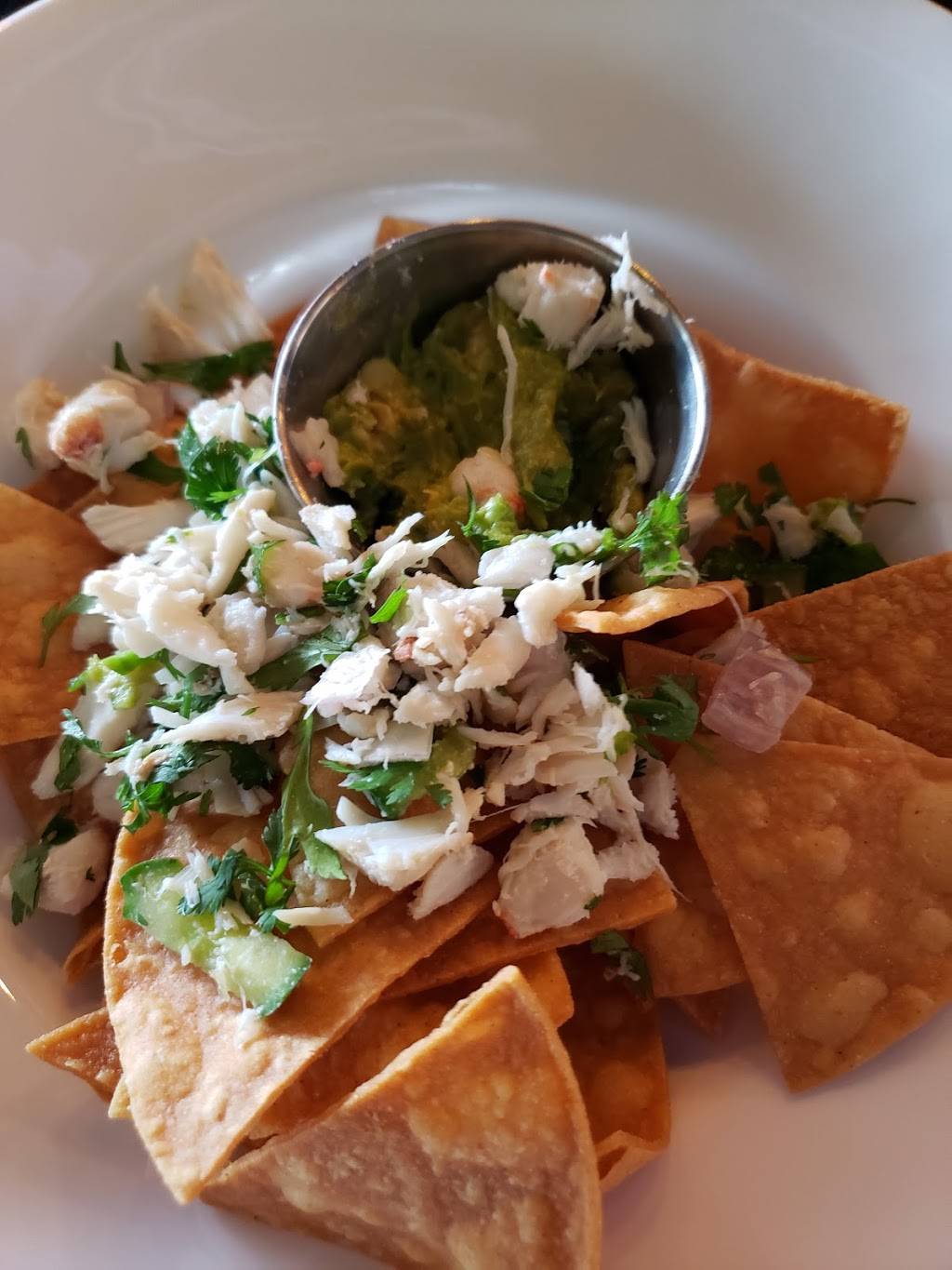 This is a really nice small place with a view of the marina. Lots of windows and classy ambience. We had the blue crab and avocado guacamole. A nice change from normal appetizer. We both had salads which were fresh and crispy. It was slow in the middle of the afternoon and the service was very nice. The beach is right across the street so we took a nice walk afterwards.