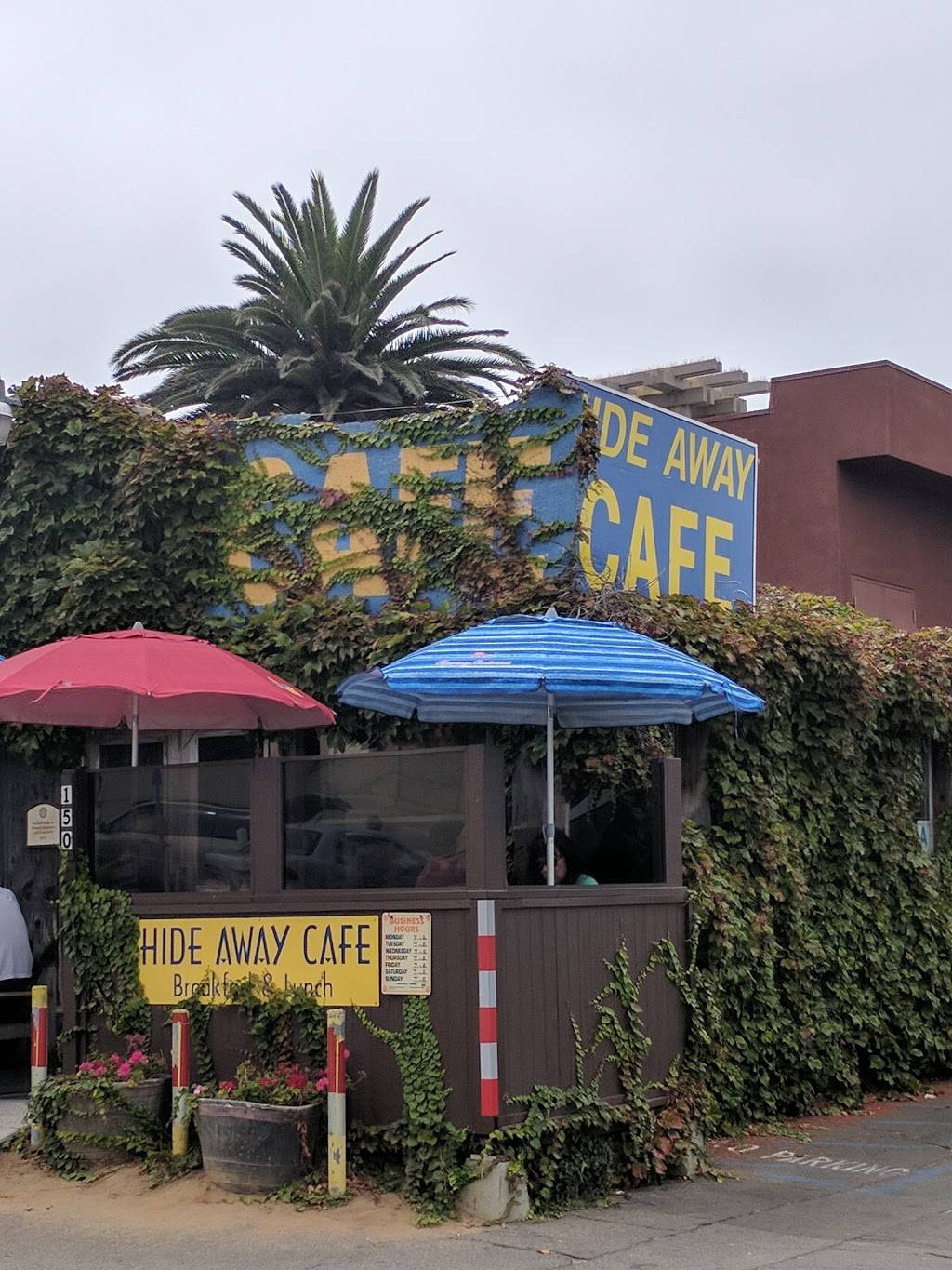 Hide Away Cafe is reminiscent to an age of local restaurants, the type where the owner knows everyone by name and they still garnish with parsley. Hide Away Cafe is a small shack literally in a parking lot right next to Fletcher's Cove by the ocean. There's one tiny room with several small tables, a counter for the workers, a tiny back kitchen, and an outdoor patio with 4-5 small tables.