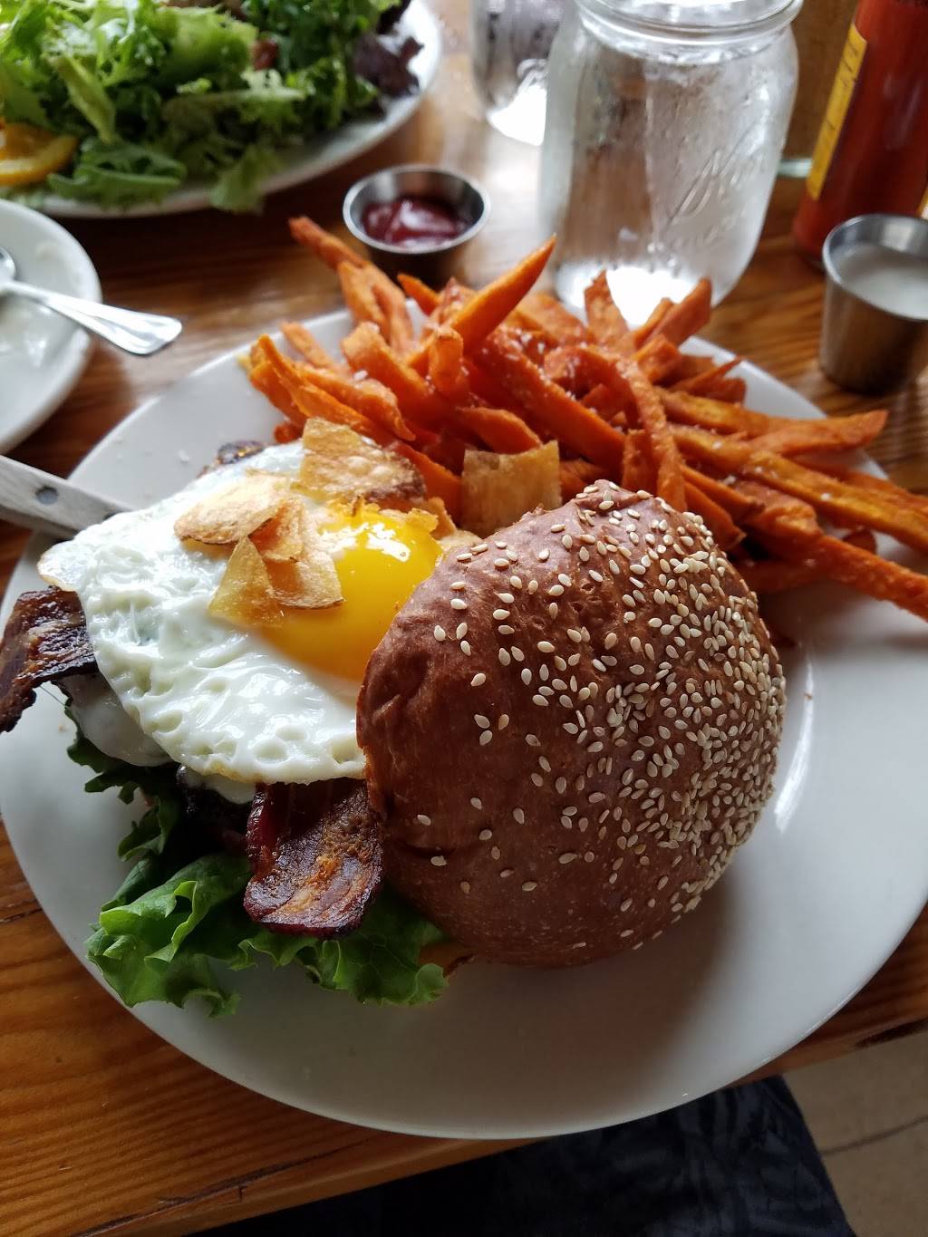 Love the location and the ambiance. I'm a repeat customer. That being said, their food is good but nothing to rave about. I haven't found anything yet that really makes me want to specifically order again. However on that note, I haven't ever had a bad experience here. Big plus for their dog friendly patio.