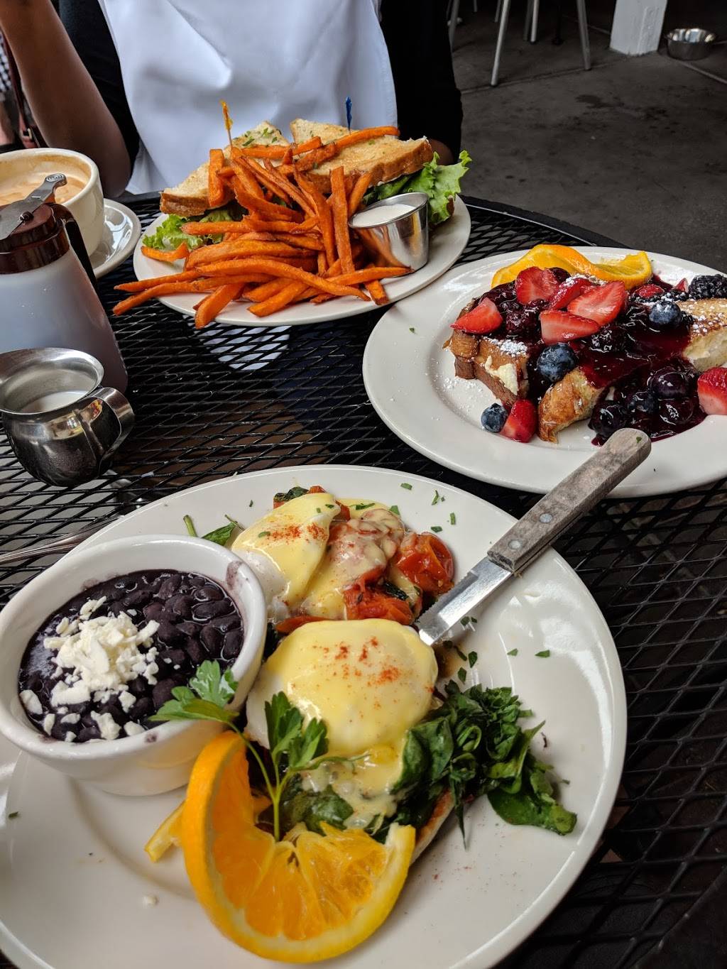 Wonderful atmosphere, great coffee and even better food. Is frequently very busy, and parking can be difficult despite being next to the train station lot. Would recommend either going early or going on a weekday. If you do have a wait, there's an attached bakery and cafe around the side of the building to pass time in. Claire's is also priced very reasonably compared to other sit down breakfast spots in the area. I would strongly recommend the lemon ricotta pancakes, but you can't go wrong!