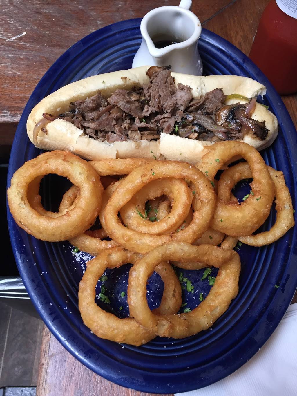 This is a great meh place. Drinks reasonable priced. Service sorta slow, but attentive. Lots of TVs for sports. Very basic food prepared well. Would I return, sure. But if I never returned I would not miss it. Nothing really wrong, nothing really great. Since I just wanted to watch my Bruins and get food it served its purpose very well.