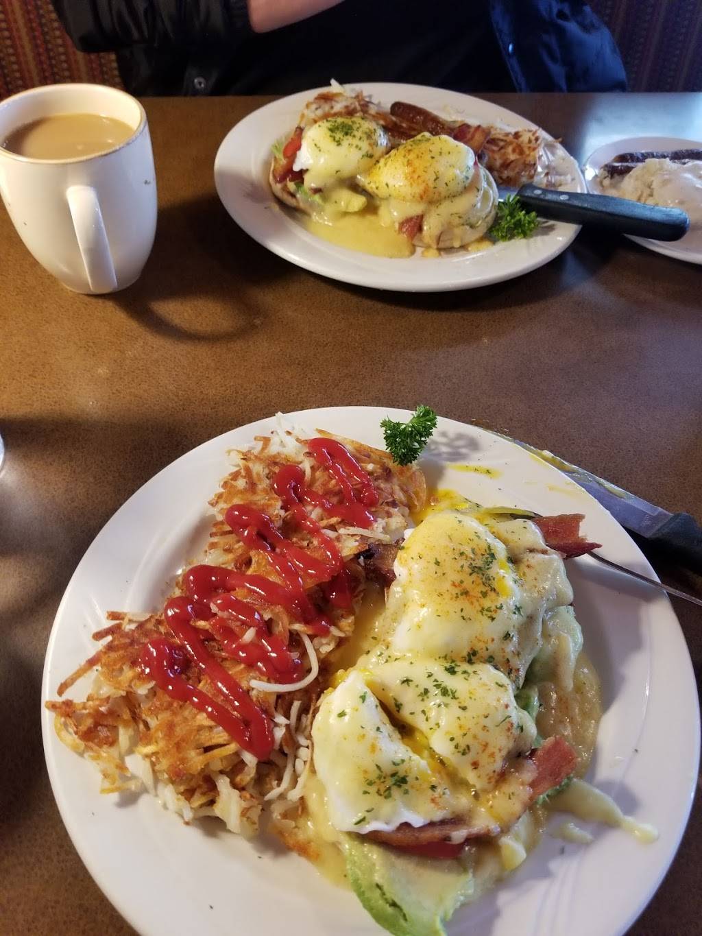 One of our favorite places to eat. The food is always excellently prepared and the pancakes are hugh and delicious. Everything we have tried has been fantastic. Took a star away as the service staff aren't always attentive to the needs of the customer and some of the staff is sloppy on there service. Atmosphere is a little dark to me liking, but overall is cozy and welcoming. Negative is that you have to GI outside to access the restroom in the back of the building.