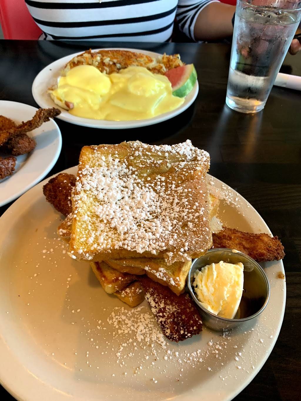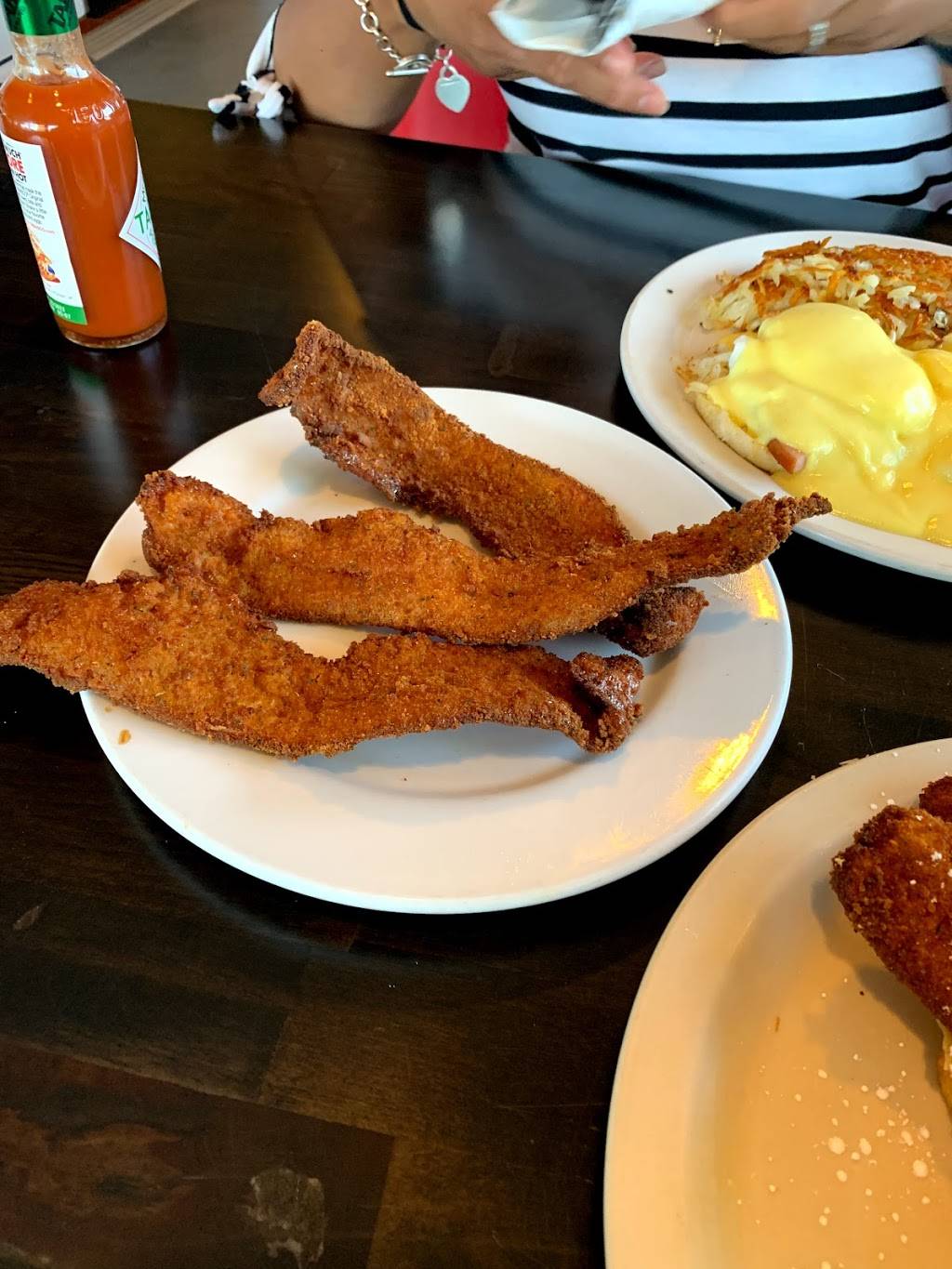Ordered the pops deep fried bacon, wish I would have read review before mines before ordering. Loved the French toast eggs and sausages. I did not like the deep fried bacon because of the taste. But overall place was clean and smelled good! Service was great and great customer service!