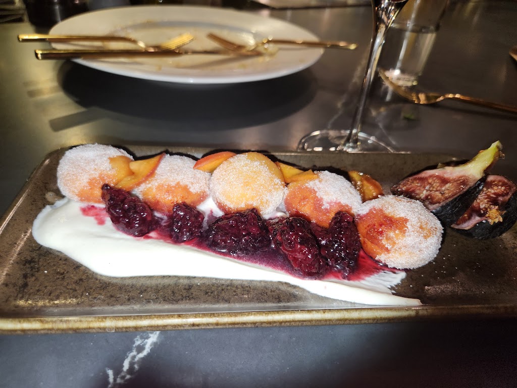 We concluded our meal with the warm, homemade donut holes served with slices of fresh peaches and blackberries over top of house-made creme fraiche, an ideal sweet ending.