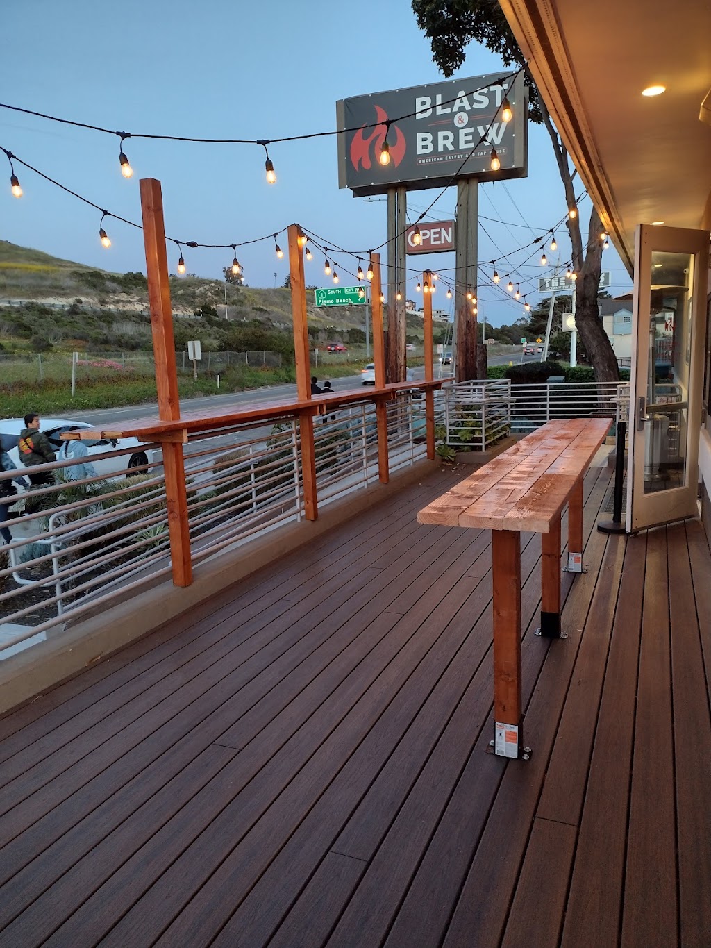 I have visited three times now. Every time the service has been excellent, but the kitchen has been slow. You may want to skip this place for a meal if you're not willing to stay for an hour or so. The layout is cool, the view is great, lots of TVs. For a place that is named Blast & Brew, you'd expect a large beer selection. But it's pretty limited to about 10 beers, all local. So if you're a local, you can go get a six pack of these beers anywhere at the same price for one here. The burgers are probably best in town and made with local beef. The nachos are also awesome.