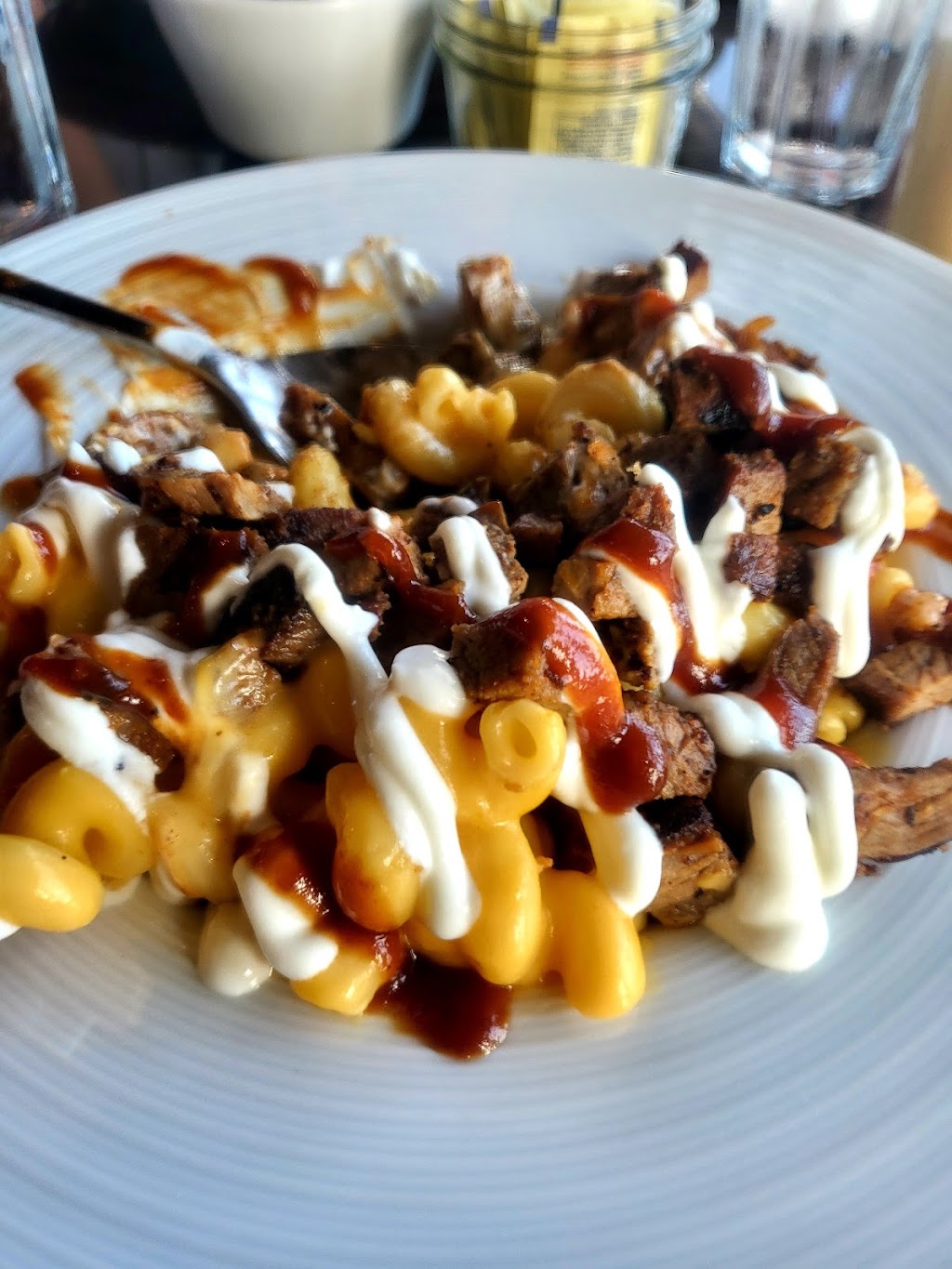 Awesome lunch here with my husband . Great service from Hannah and amazing food! We got the steak bites appetizer, the clam chowder bowl, and the cowboy pizza. Everything was amazing and no wait !