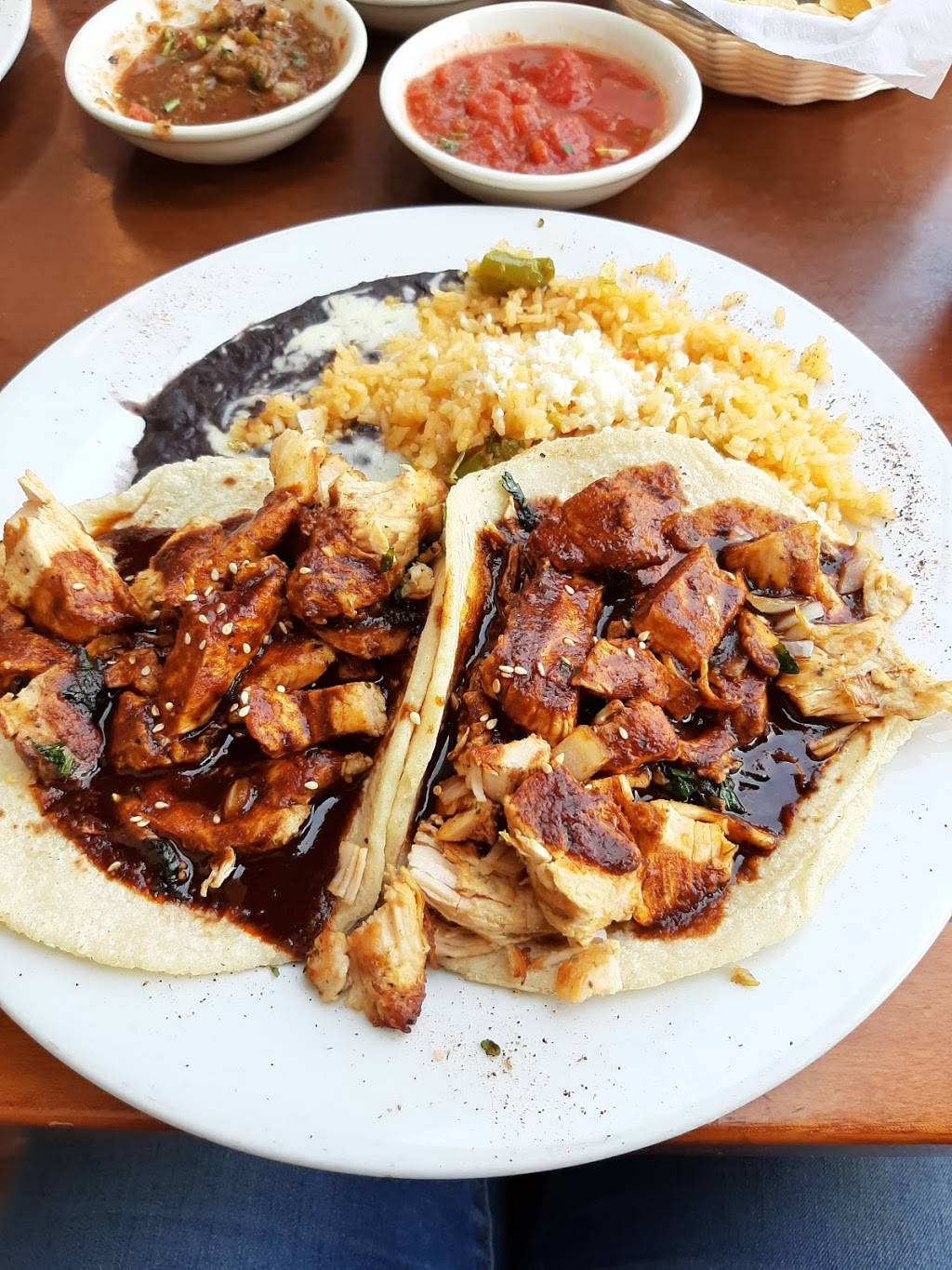 Very clean. Outdoor dinning. Friendly service. Yum Mole Poblano Tacos ?