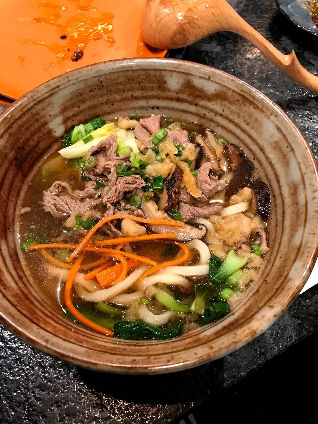 Ambience was great but chairs were a bit scary , flimsy and slides on floor. Service was friendly and fast. We had a pork dish, a crab salad and 2 kinds of udon. My least favorite was the udon, unfortunately it can definitely use more flavour. The other dishes though were actually quite delicious.