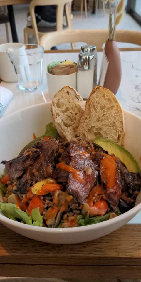 The vegetarian bowl with hangar steak is immaculate. Well worth the wait