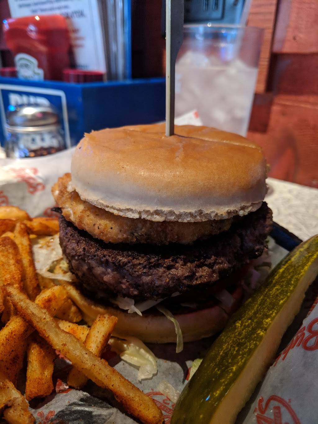 I enjoyed the service here. I was greeted with a nice warm smile and I had the jalapeno spicy burgers so good he was so hot and fresh and tasty. Also they have a lot of TVs so why should never getting with your girls really easy. With all the TVs football And games