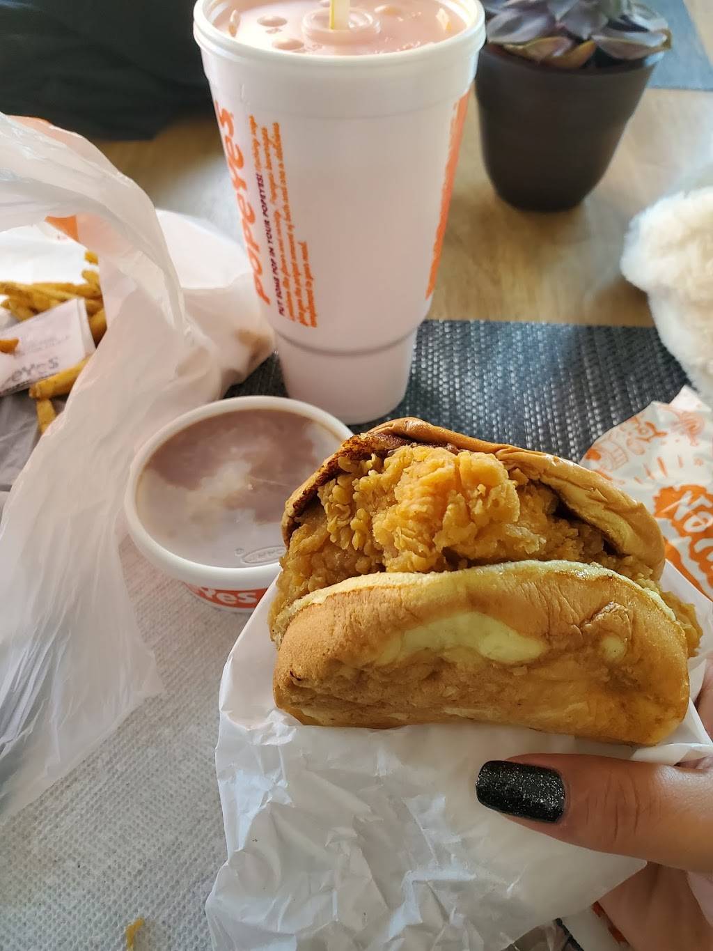 I went to Popeye's after work & placed my order like normal. After I got the food I went home & stepped away to the restroom for not even 3 minutes & our dog ate ALL of the food. I went back to Popeye's to let them know what happened & Mayan helped me immediately & replaced my food for free! I was willing to pay for the food again, but she still offered it for free anyway! I want to say thank you for being so kind & understanding!! 5 stars goes to Mayan & an excellent team ! :)