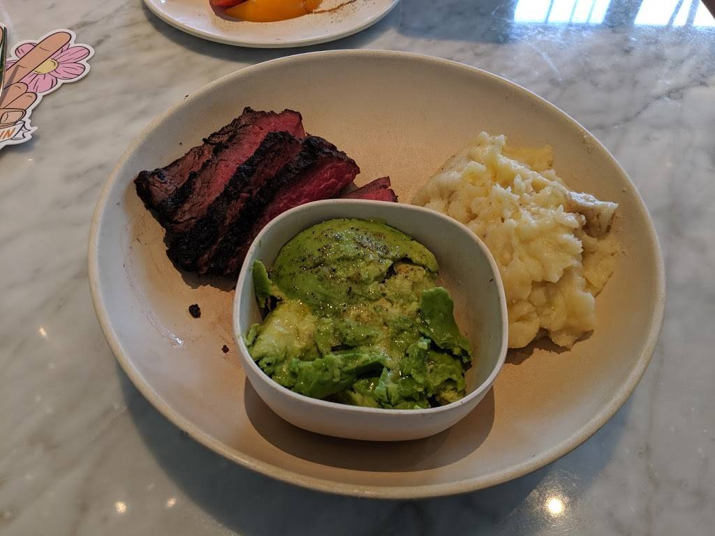 I love Flower Child! This night my spouse had the curry bowl and I did a plate, pick your sides and add a protein. I had the smashed potatoes and smashed avocado with grass fed bed steak. We both had lemonade and shared a gluten free brownie with sea salt!!. Crazy reasonable. The kids menu also looks amazing. Healthy and delicious, but not very fast for counter service style.