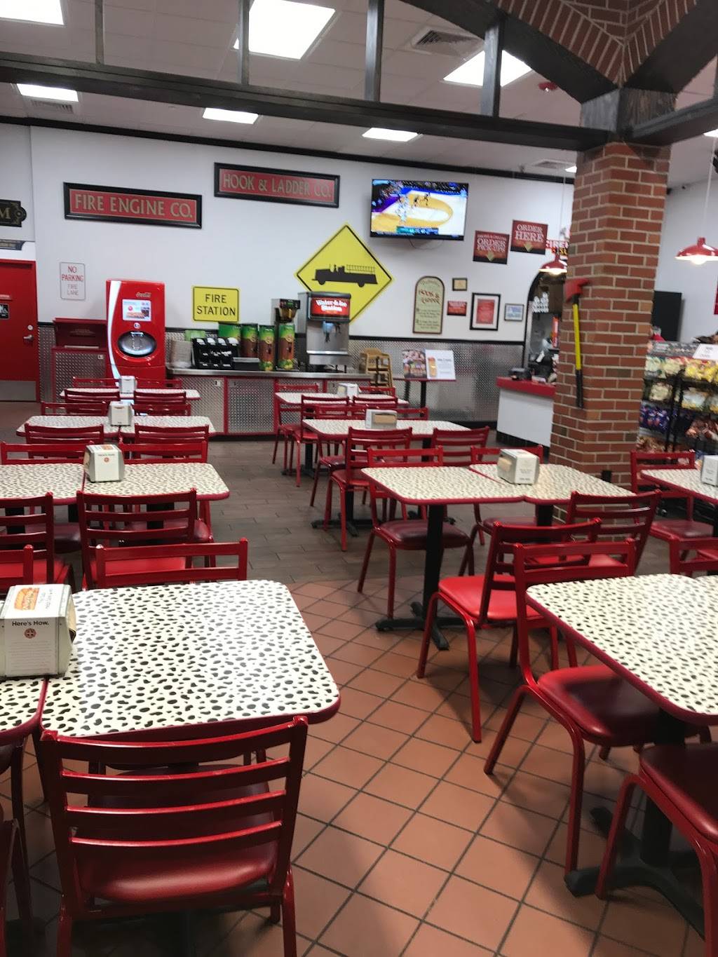 Food was tastie and good. Five people working, standing around talking...tables and chairs needed cleaning, plus the floor. Dirty restaurant. A real fireman would have it spotless.