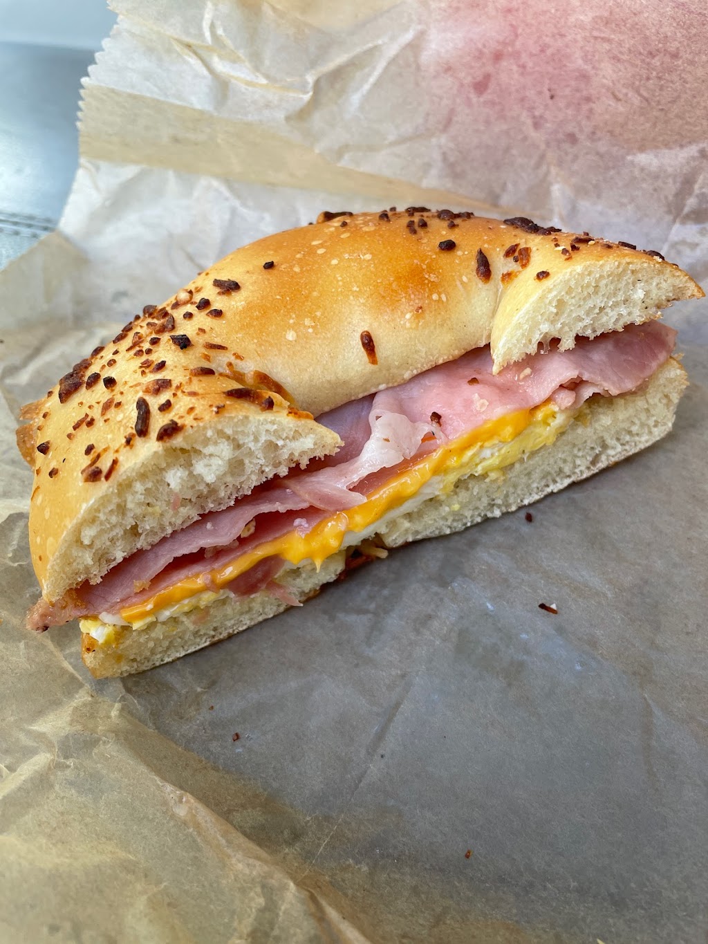 Nice quiet little mom and pop place. Bagels are made daily. Great selection. Their breakfast sandwiches are killer. Get there early. They usually get packed and if you don't mind waiting, it's worth the wait. They have jumbo and mini muffins. Great for parties or individuals or breakfast on the go. A little spendy, not bad but worth the price.
