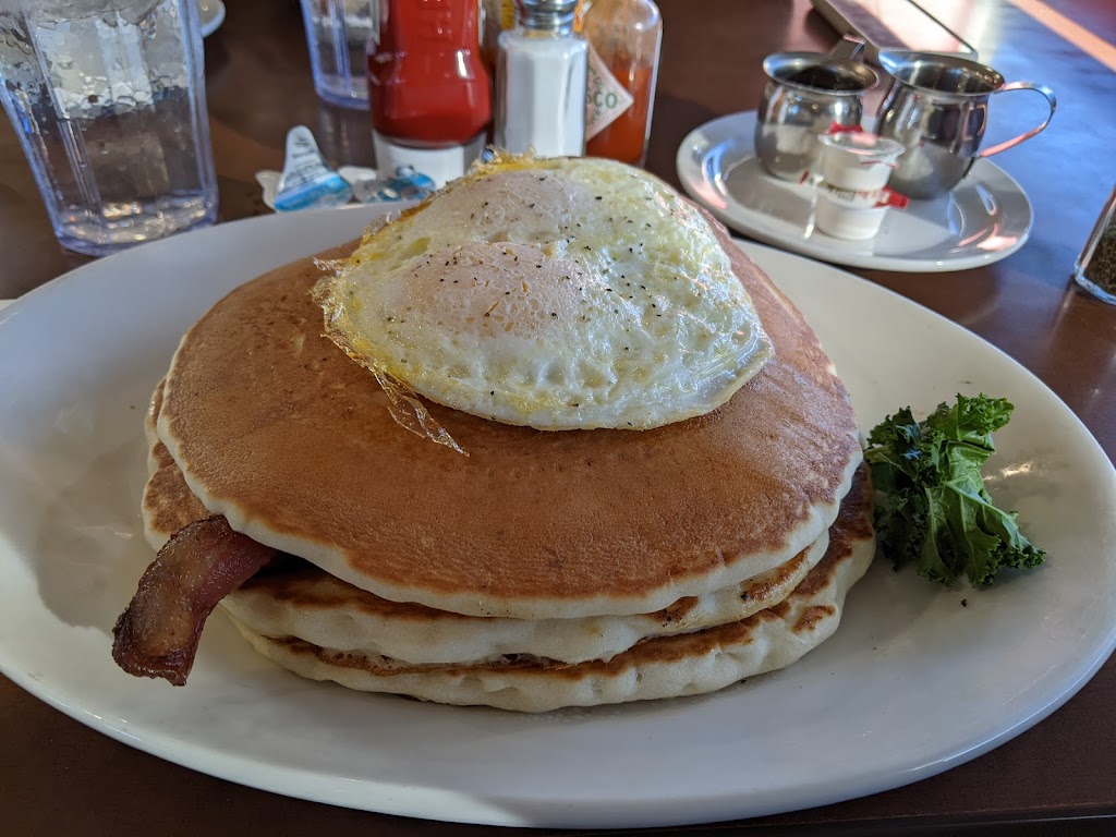 Great breakfast. I had two pancakes with bacon and scrambled eggs. The pancakes were HUGE and I definitely couldn't finish them all! The service was great especially since I went early in the morning and there weren't many customers. Lots of options and seems like a great diner!