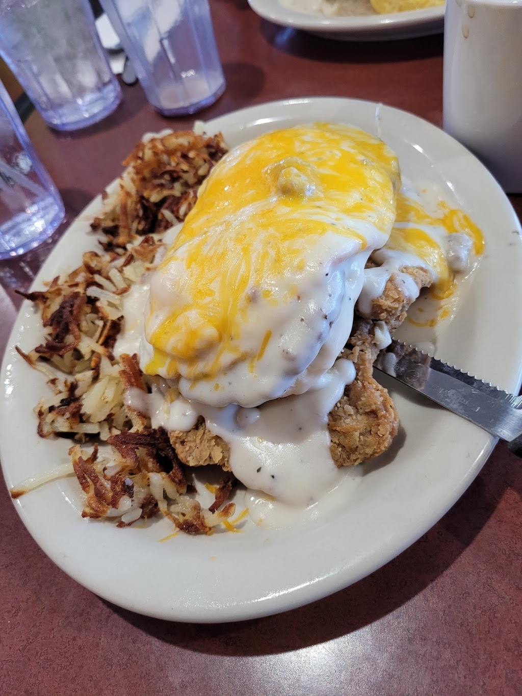 I definitely have to say, this is probably my favorite diner in Junction. I ordered the Country Fried Steak with sunny side eggs and home fries with a side of 2 pancakes! It did not disappoint. Came out within 15 mins of being ordered, Jessie was my waitress and she was on top of it, my water didnt go empty, endless coffee, she really made the experience great! I will come here again and again just for the country fried steak!